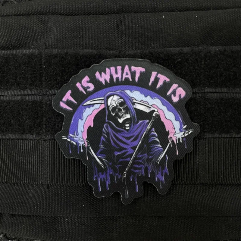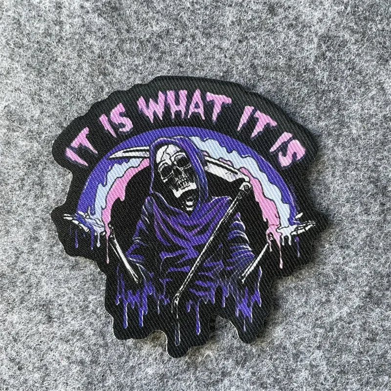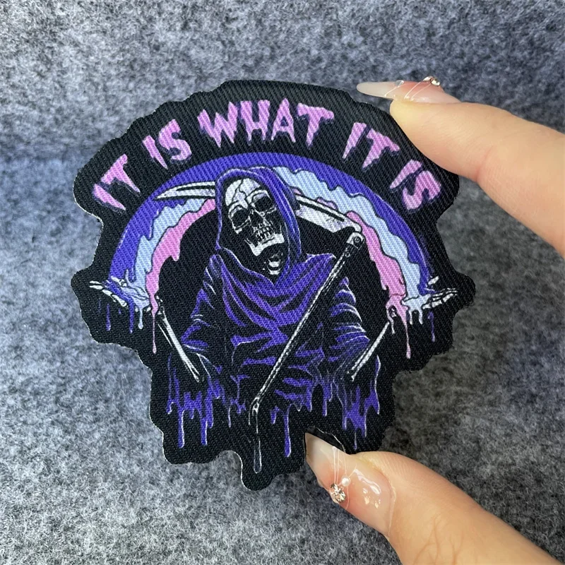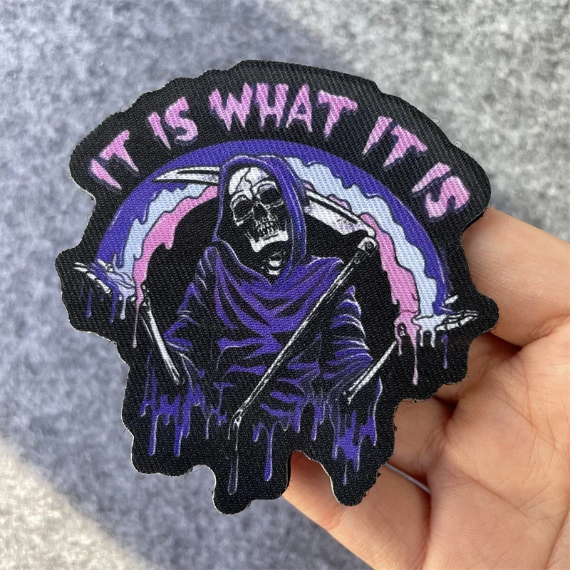Parche espeluznante de Halloween, IT IS WHAT IT IS, brazalete de calavera con gancho y bucle, parche Punk, pegatina de tela, apliques para ropa