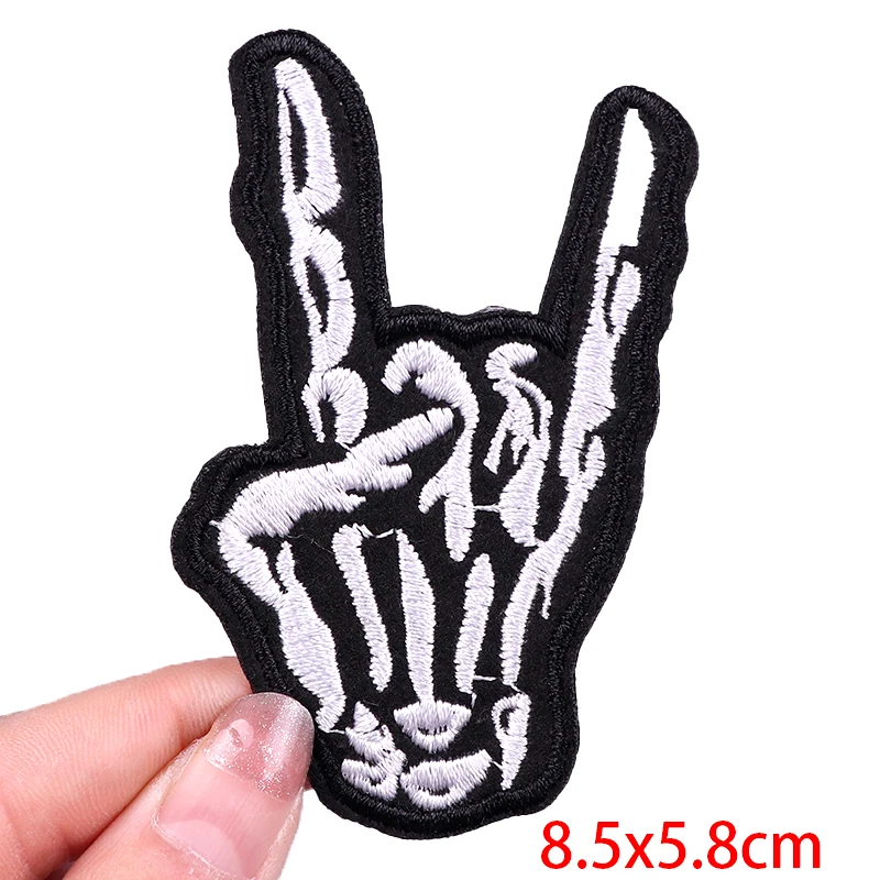 Parche de esqueleto Punk, parche bordado, parches de hierro para ropa, esqueleto de terror, corazón rojo, insignia de pegatinas para coser ropa