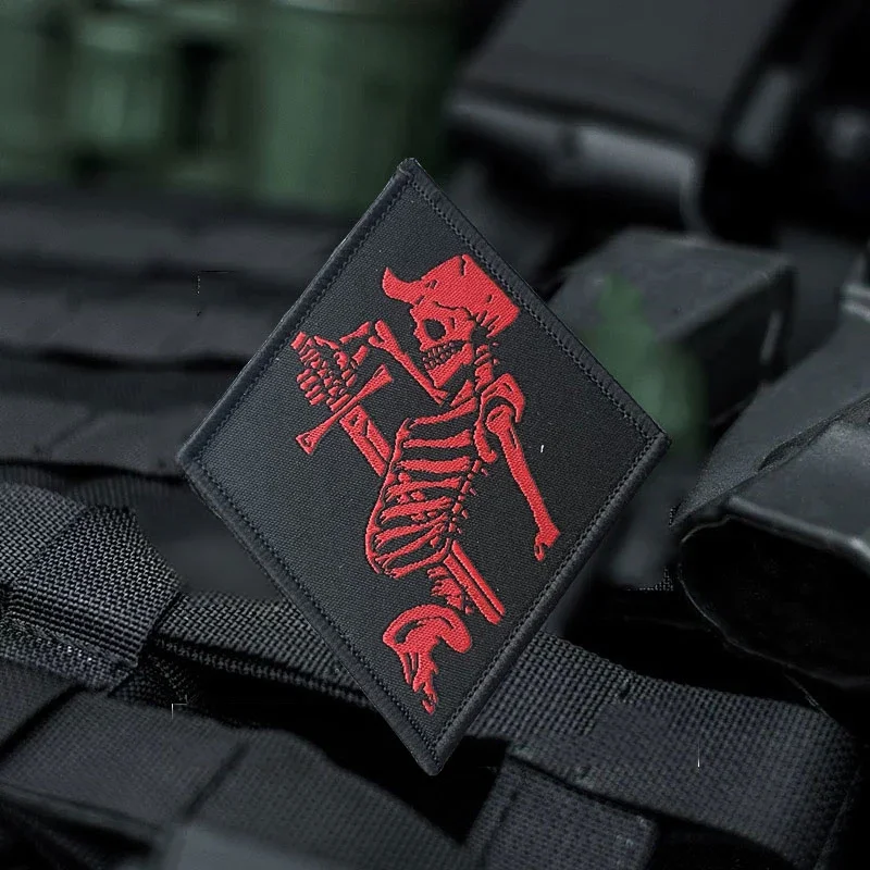 Parche esqueleto rojo Task Force Doomer moral, insignia, gancho y Lvoop, parches tácticos para mochila