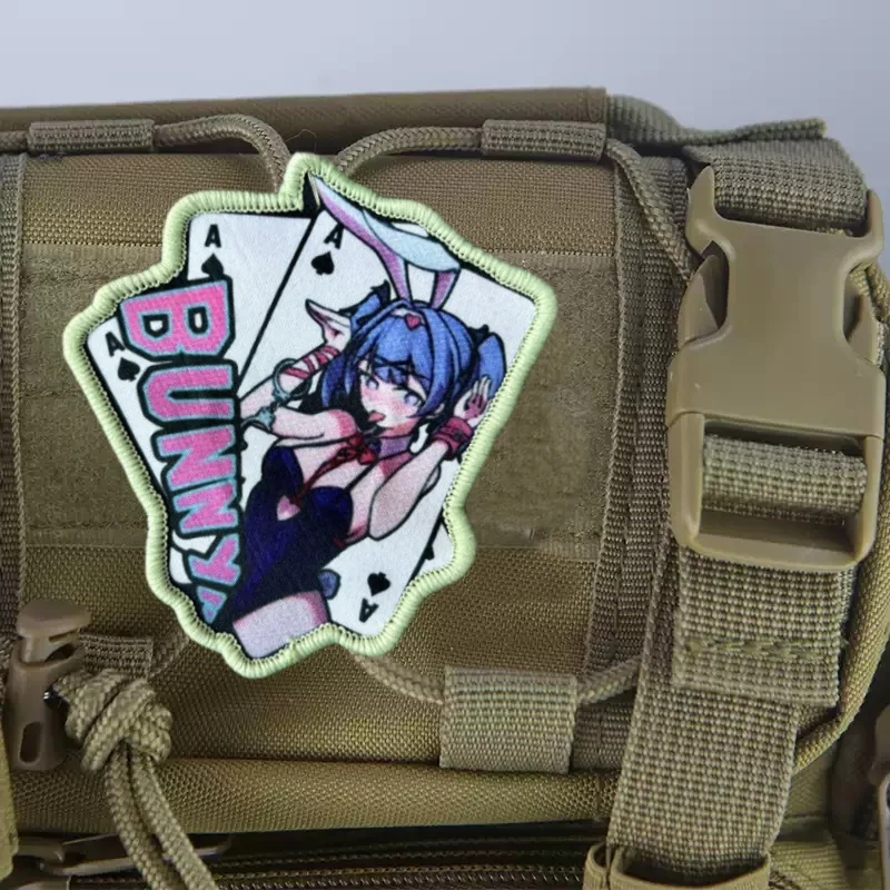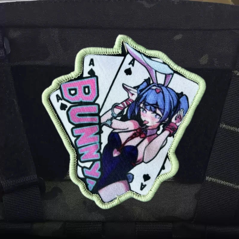 BUNNY chica Anime estampado parche en ropa insignia de moral táctico gancho bucle parches militares mochila accesorios pegatinas brazalete