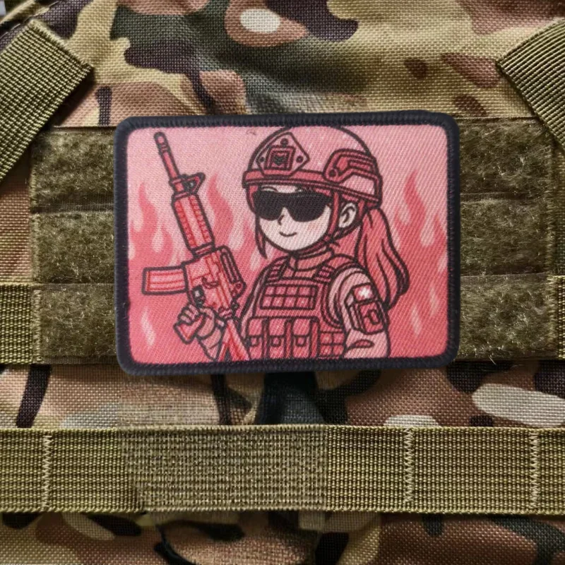 Parche de impresión de Anime Gun Girl, chaleco táctico, insignia de moral, mochila con gancho y bucle, sombrero, pegatinas decorativas, parches DIY para ropa