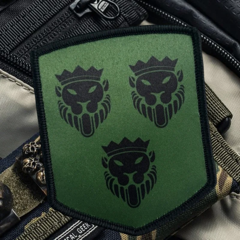 Parche con estampado de cabeza de león y corona, chaleco táctico, insignia de moral de gancho y bucle, pegatinas decorativas para mochila, parches para brazalete para ropa