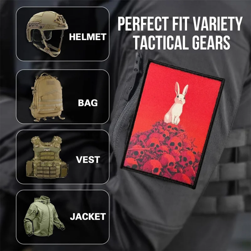 Parche con estampado de calavera de conejo, chaleco táctico, sombreros con gancho y bucle, insignia de moral, mochila, pegatinas decorativas, parches para brazalete para ropa