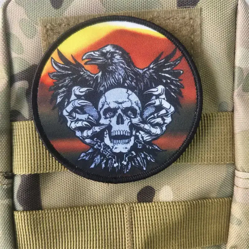 Parche de impresión de calavera de cuervo, parches militares de gancho y bucle para ropa, insignia de moral táctica, mochila, pegatinas decorativas, brazalete
