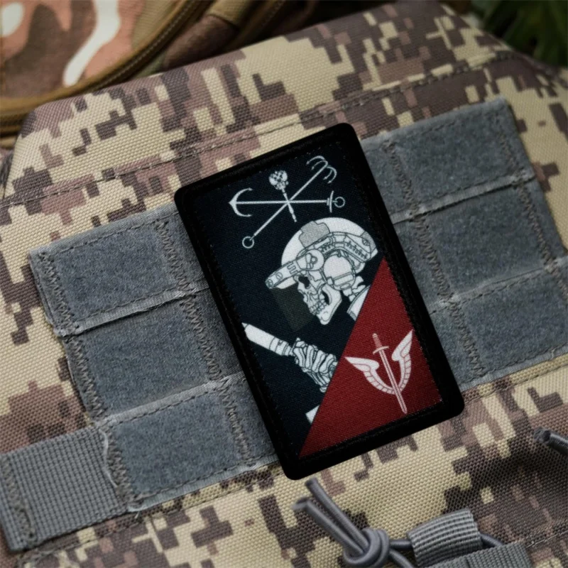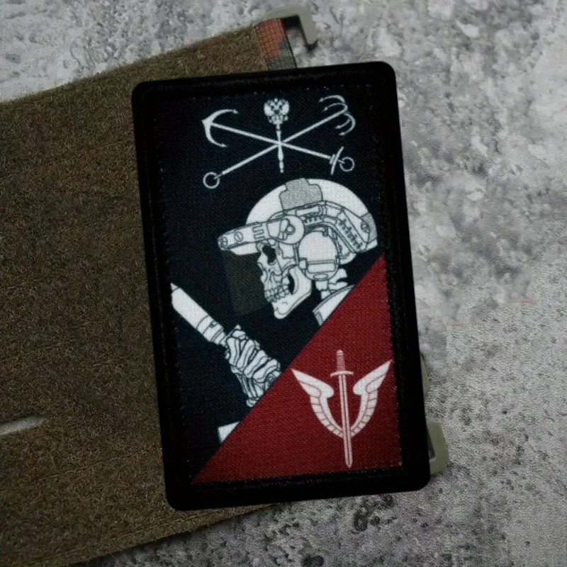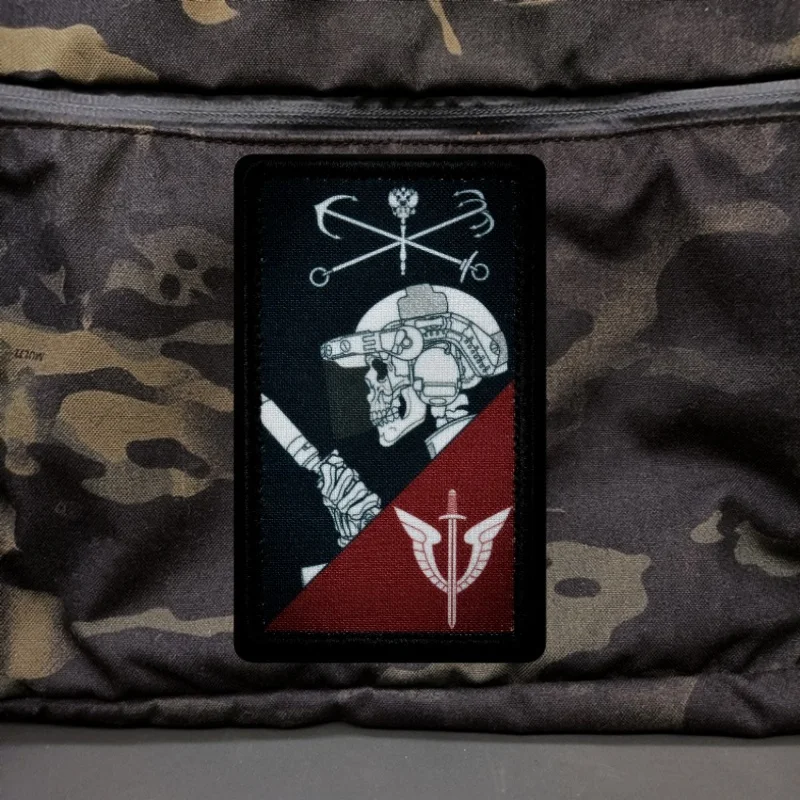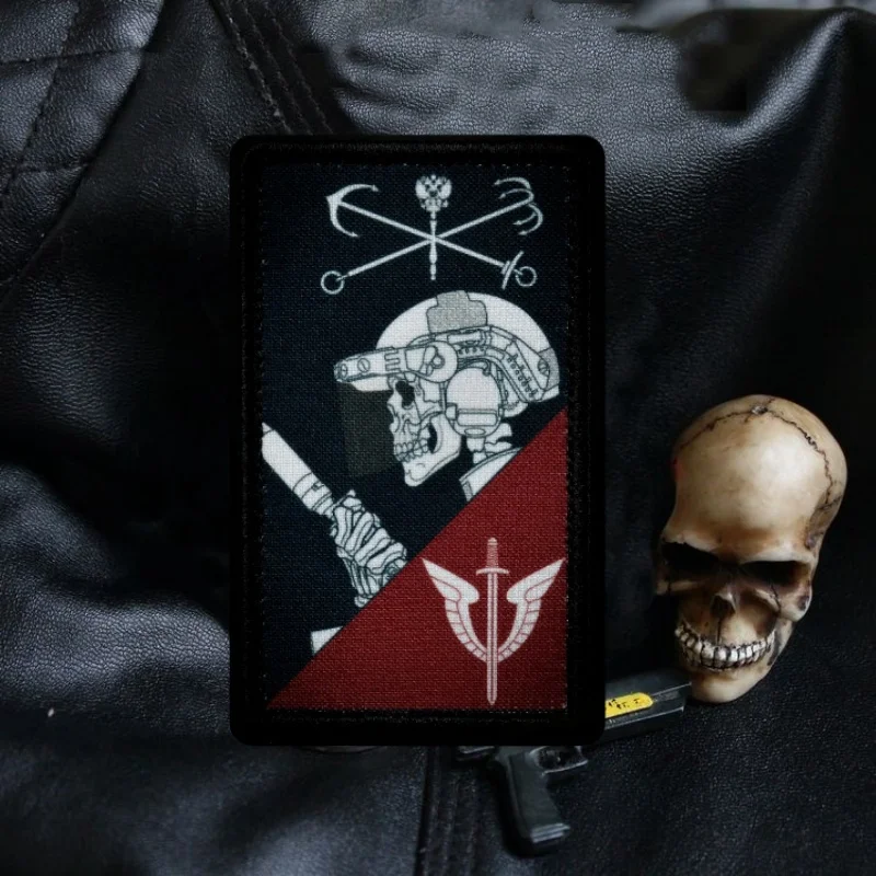 Parche con estampado de calavera de "Omon St. Petersburg", pegatinas tácticas militares para mochila para ropa, insignia de moral, parches de gancho y bucle