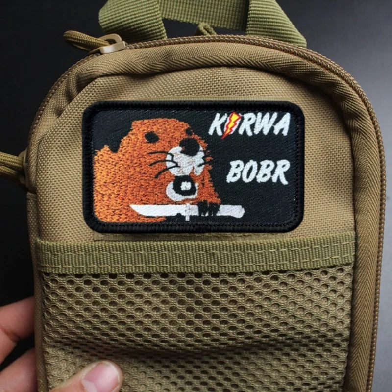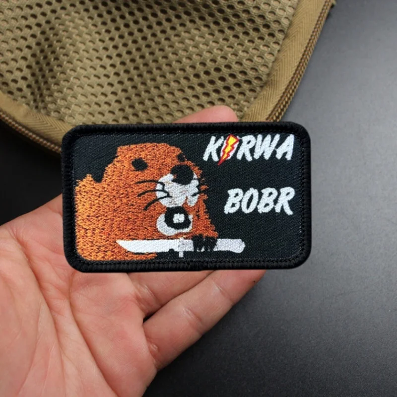 Parche con estampado de castor con cuchillo, insignia de moral táctica, parches con emblema de gancho, pegatinas militares para mochila Chevron para ropa