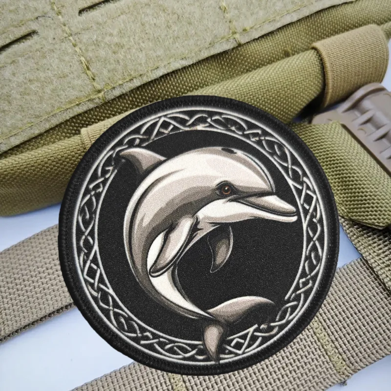 Parche con estampado de delfines de Anime, chaleco táctico con gancho y bucle, insignia de moral, pegatinas militares para mochila, parches para abrazadera para ropa