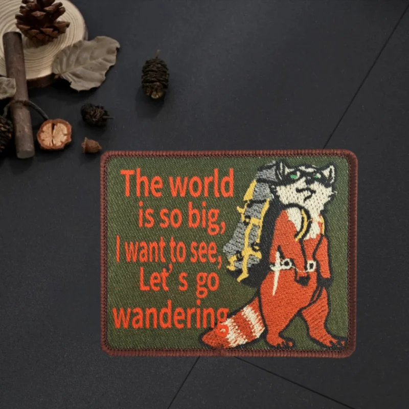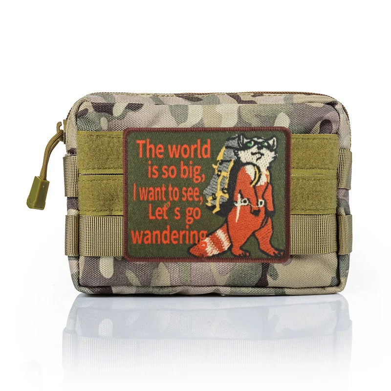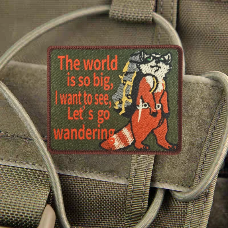 Parche con estampado de gato The World Is So Big Traveler, insignia de moral táctica, parche adhesivo para mochila con gancho y bucle militar para ropa