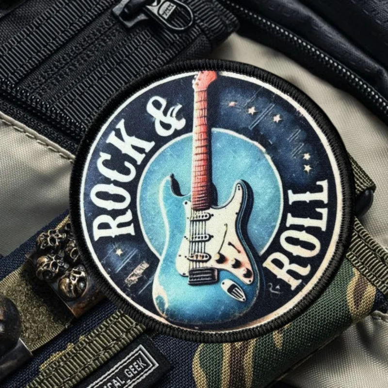 Parche estampado de instrumento de guitarra, chaleco táctico con gancho y bucle, insignia de moral, mochila, pegatinas decorativas, parches para brazalete para ropa