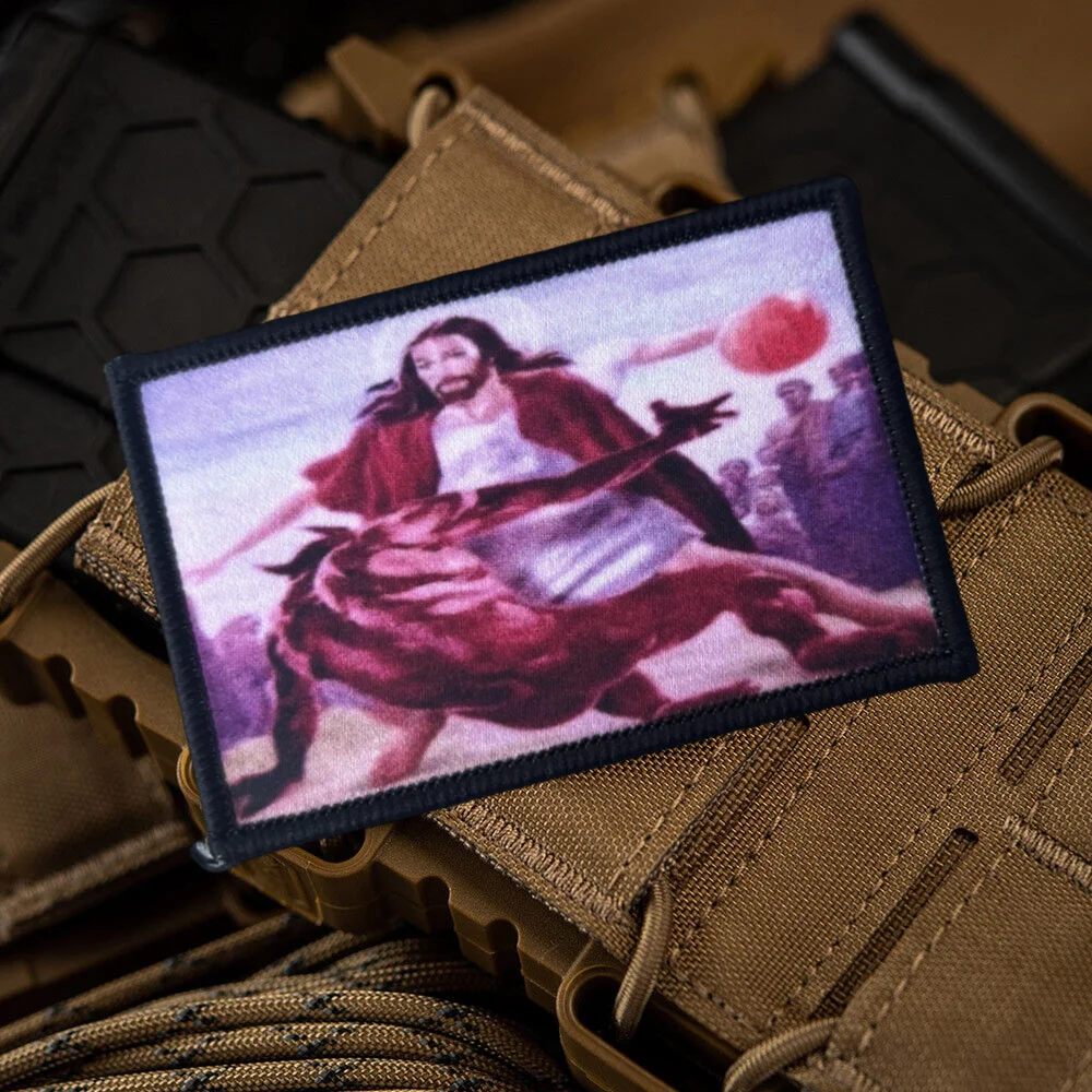 Parche estampado de Jesús Crossing The Devil Morale, emblema militar, insignias de gancho y bucle, pegatinas tácticas personalizadas del ejército divertido