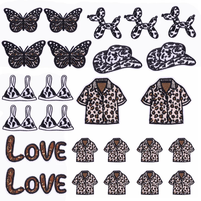 Parche con estampado de leopardo personalizado para ropa/sombreros/parche bordado de mariposa, Parche de dibujos animados, parches para planchar, 10