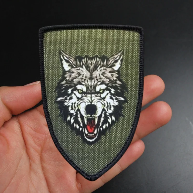 Parche con estampado de lobo para ropa, insignia de moral táctica, gancho, parches militares, mochila, brazalete, pegatina