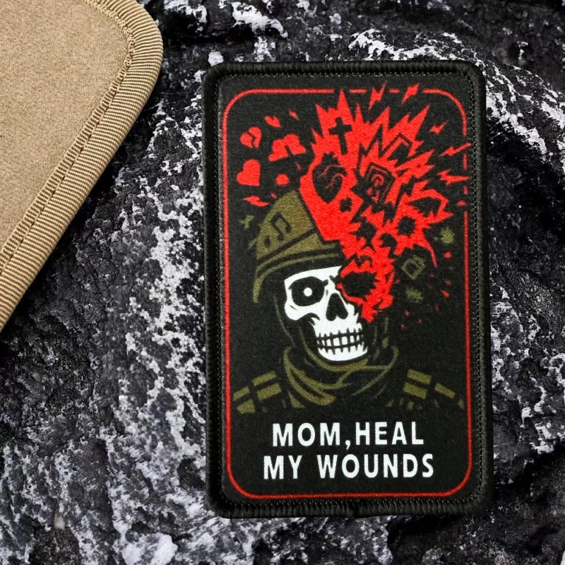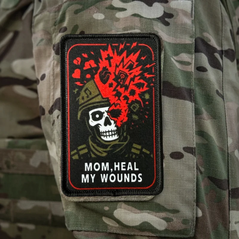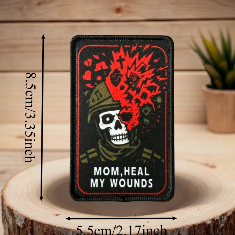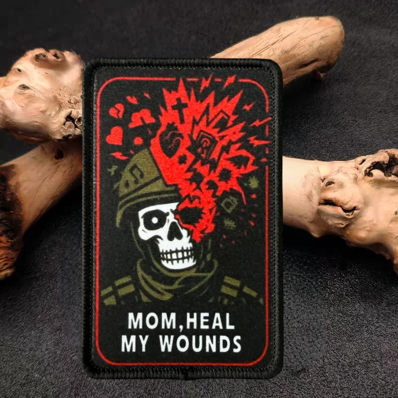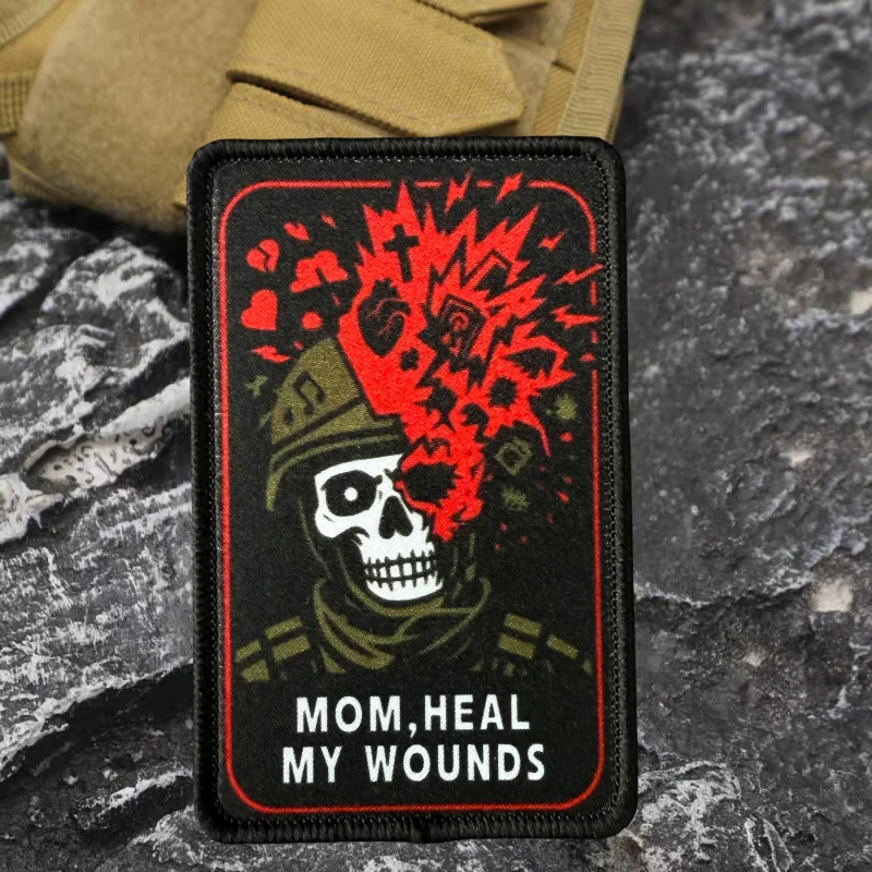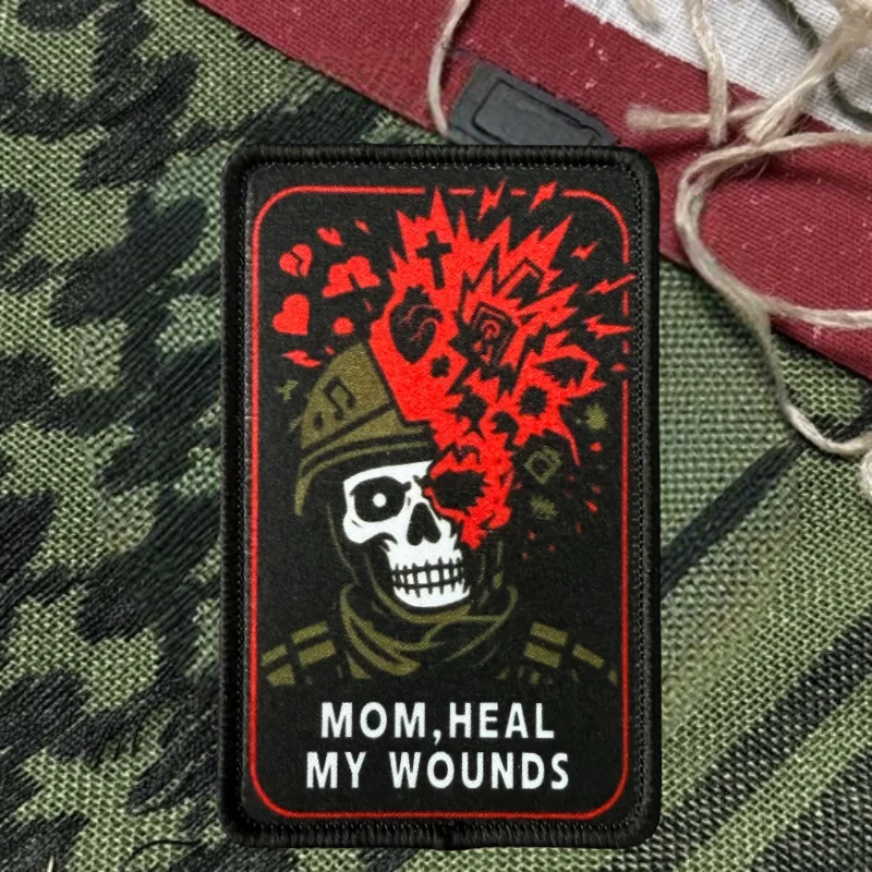 MOM, HEAL MY WOUNDS Parche estampado Chaleco táctico Gancho y bucle Sombrero Insignia de moral Mochila Etiqueta decorativa Parches para brazalete para ropa