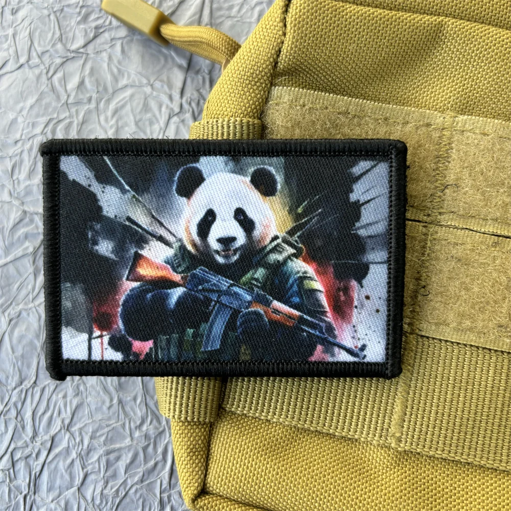 Parche con estampado de Panda en la ropa, insignia de moral Airsoft, parches tácticos militares, pegatinas de gancho y bucle para mochila, AK47