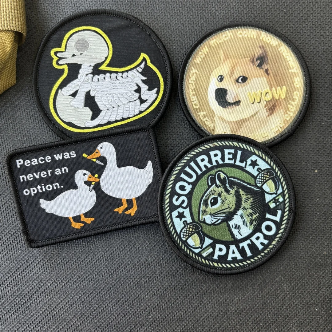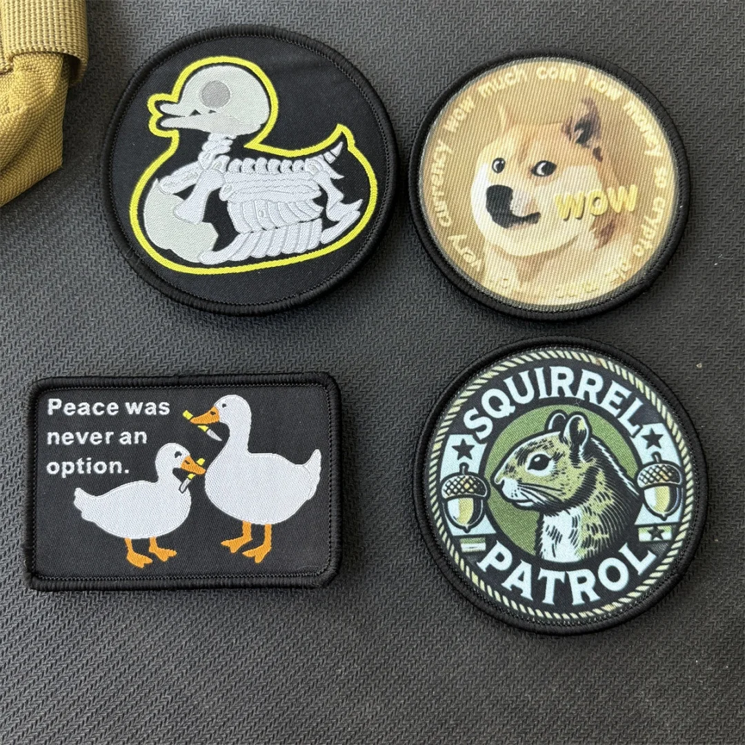 Parche de impresión de pato esqueleto, brazalete táctico divertido para perro WOW, insignia militar de ardilla, insignia de moral, mochila con gancho y bucle, pegatinas para sombrero