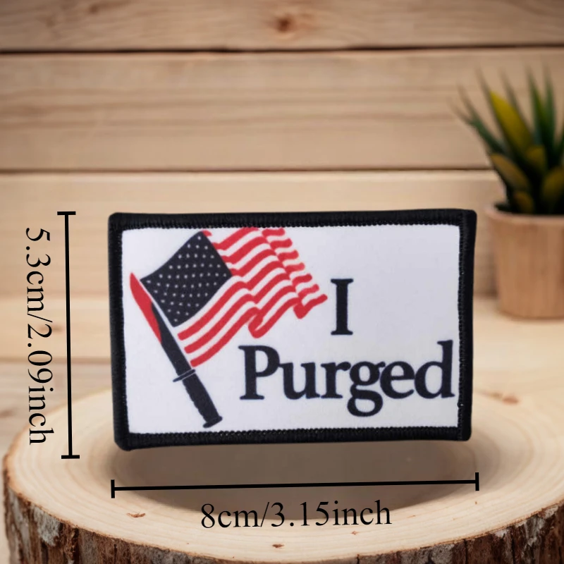 "I PURGED" Bandera Americana Parche de impresión táctica Gancho y bucle Insignia de moral Mochila Parches adhesivos decorativos para ropa