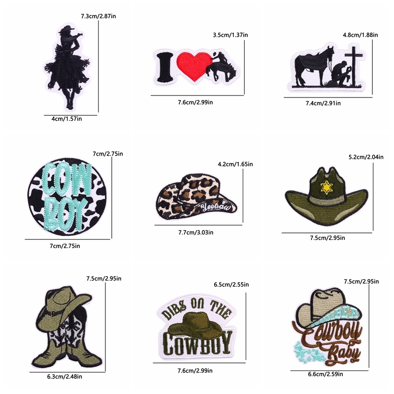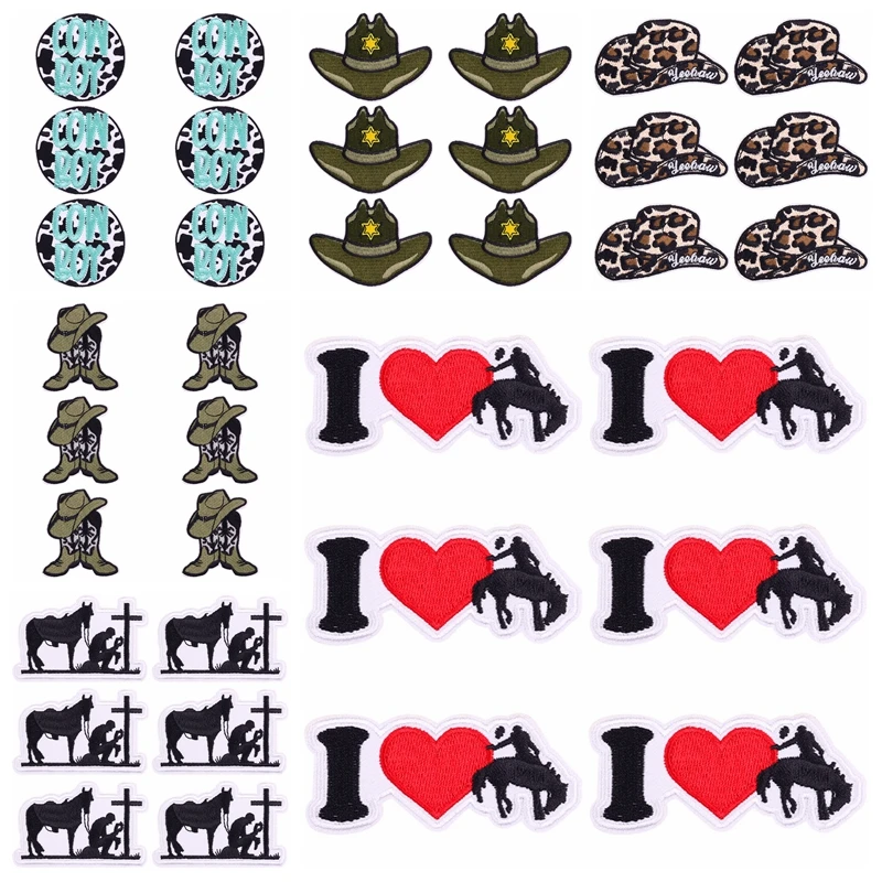 Parche de estilo vaquero occidental para ropa, 10 piezas, para chaquetas, sombreros, mochila, coser insignias bordadas, parches para planchar, insignias bordadas DIY