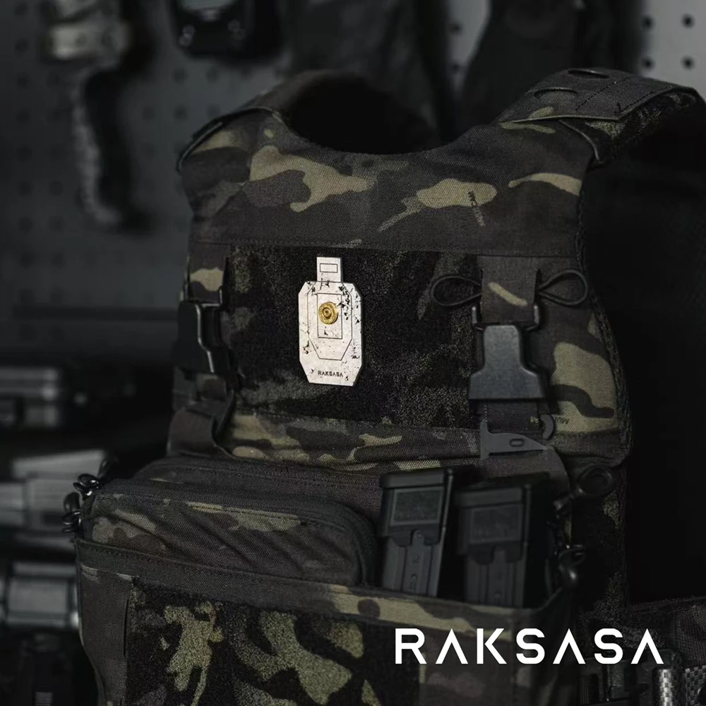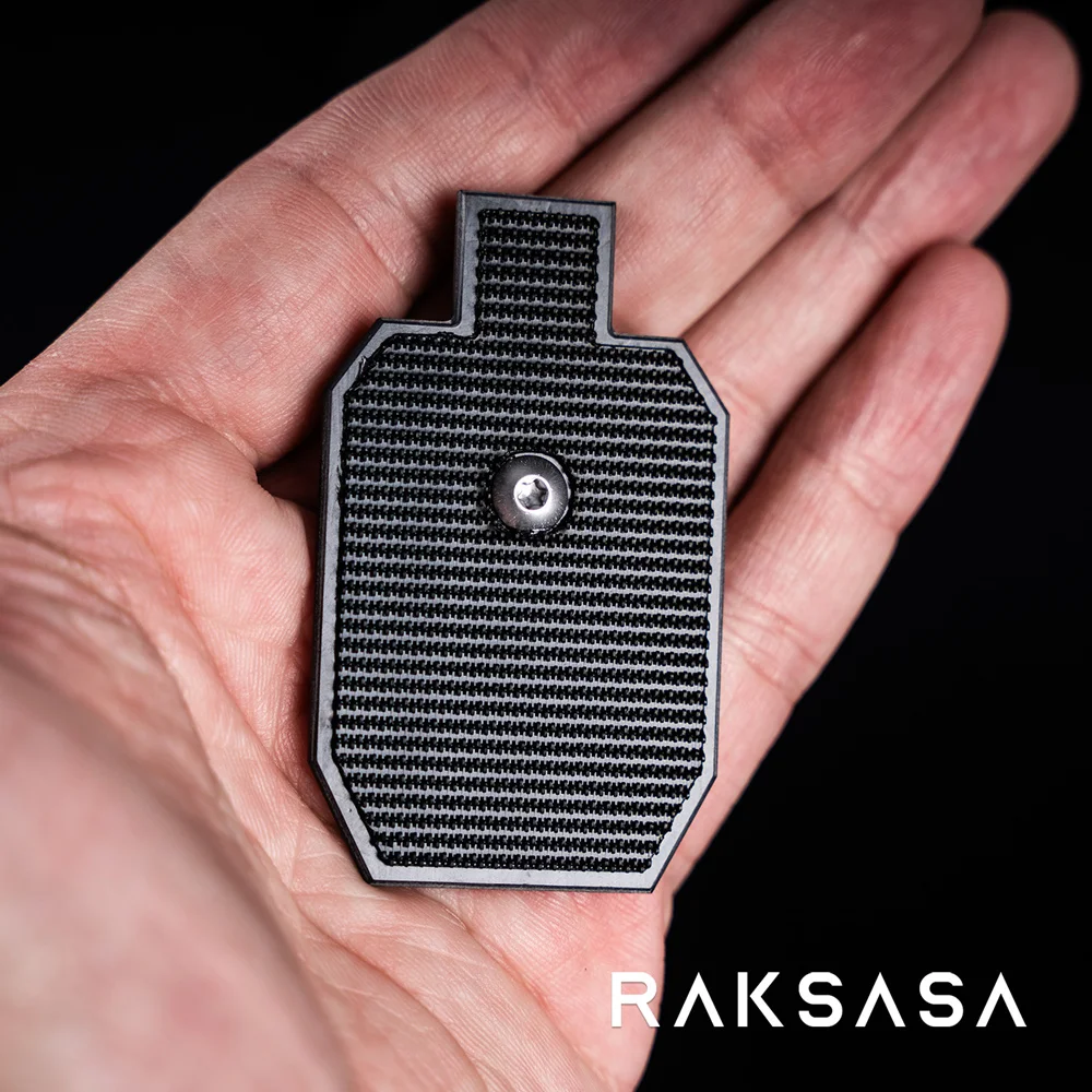 Parche de fibra de carbono compuesto de lámina de plata objetivo, deportes de tiro con incrustaciones de latón EDC táctico con gancho para decoración de mochila de ropa