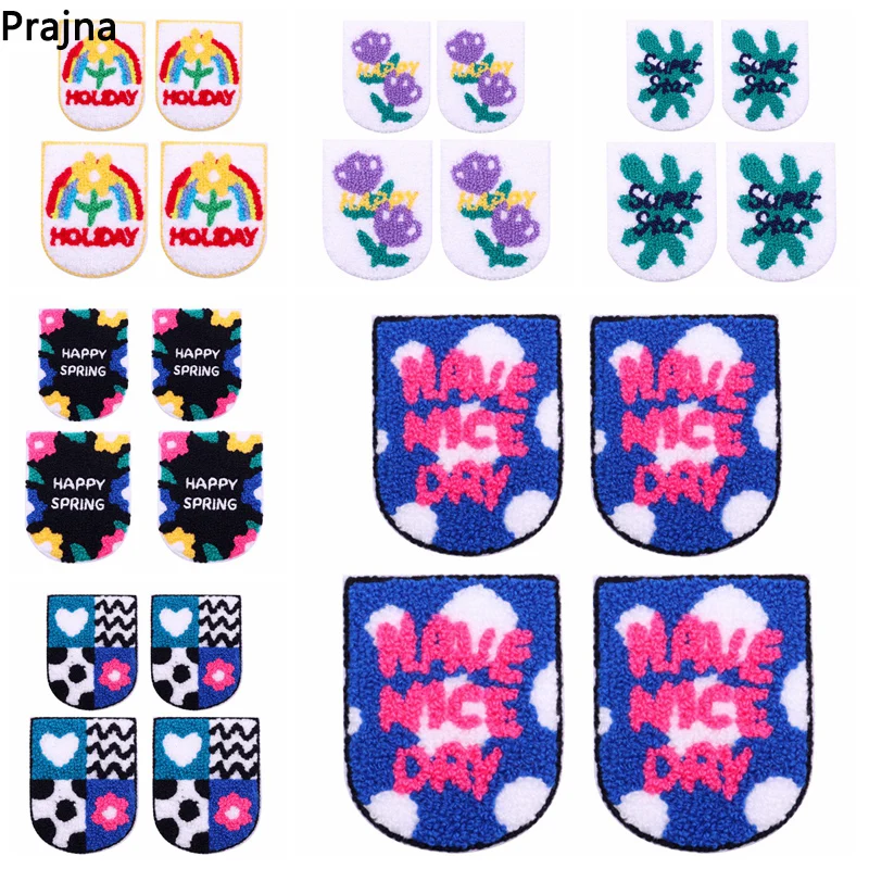 Parche de Flores con Letras Inglesas Bordadas para Coser, Parche de Chenilla para Planchar EN LA Ropa, Parches de Bolsillo para Ropa, Toalla de 10 piezas