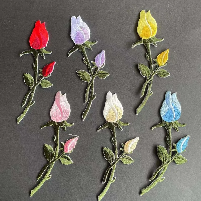Parche de flores de tela con apliques 3D, bordado termocollante, pegatinas de planchado para ropa, decoración de vestidos, 3,5x11CM