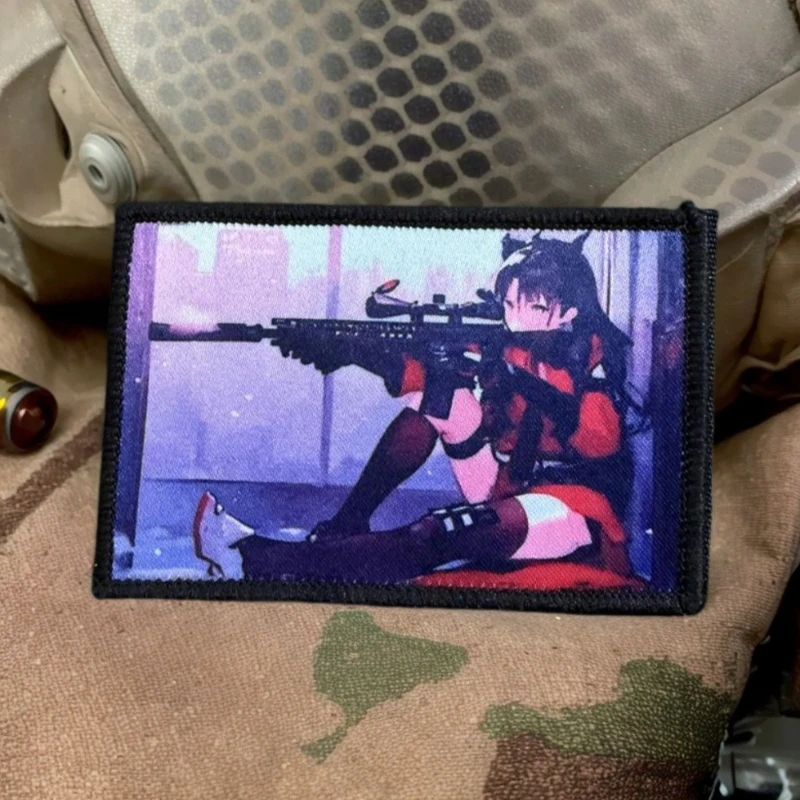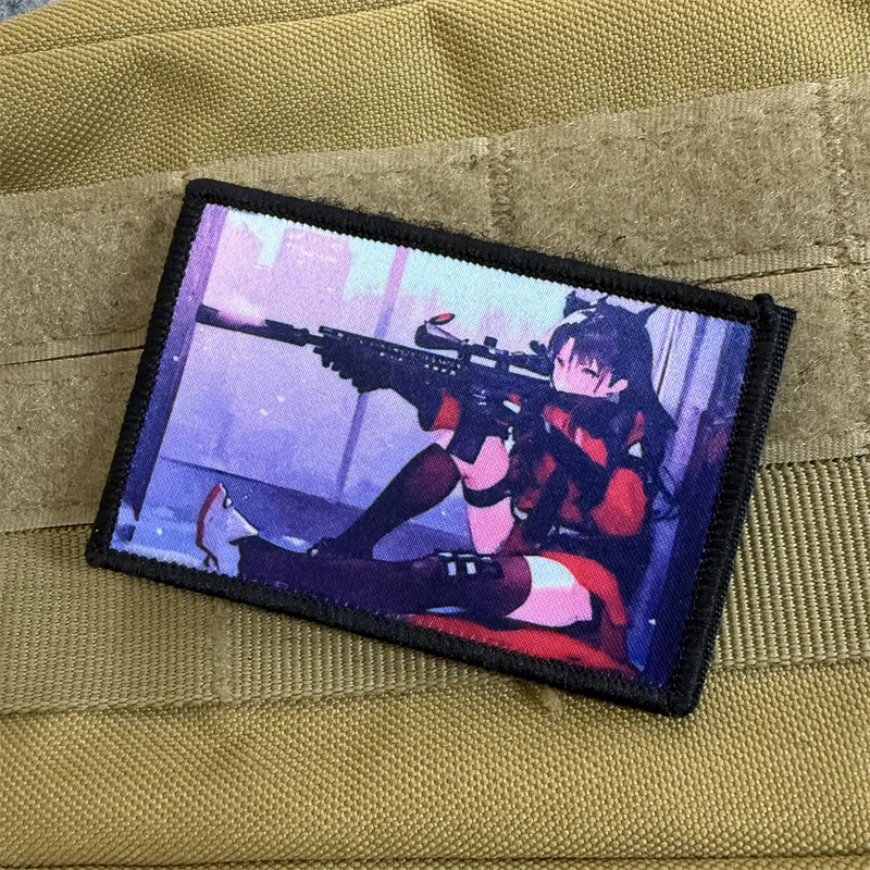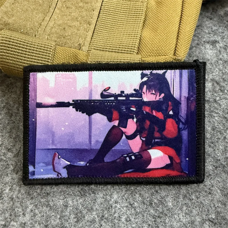 Parche de francotirador de Chica de Anime, insignia de moral táctica, parches de brazalete con gancho y bucle impresos para ropa