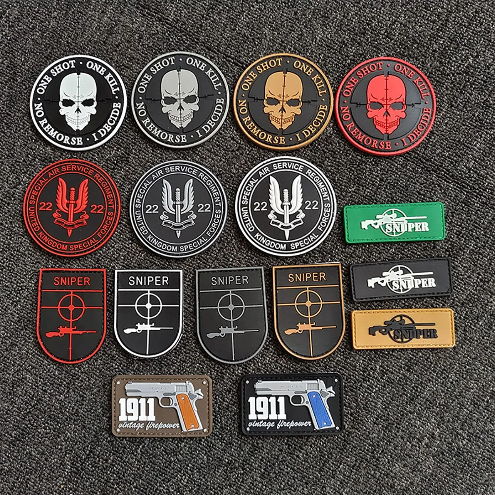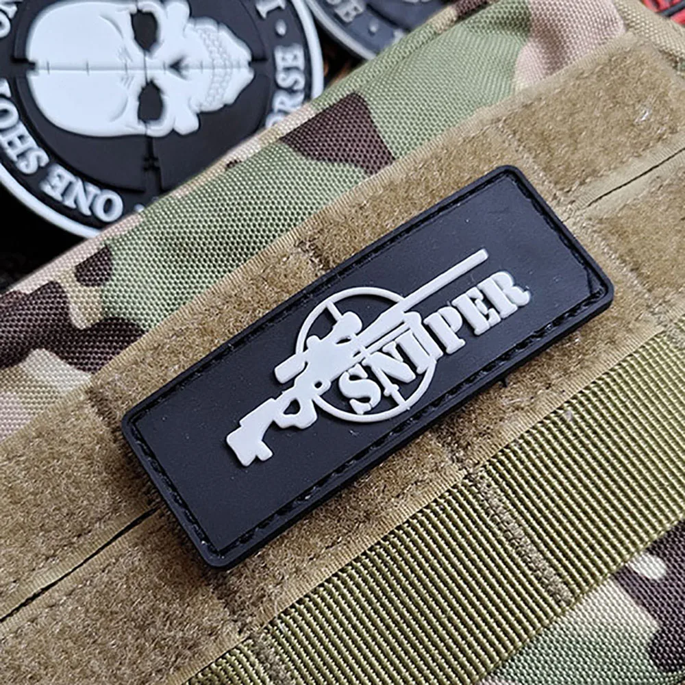 Parche de francotirador de PVC 3D, insignia táctica de calavera de goma, parches militares del Ejército en la ropa, mochila, gorras, sombrero, aplique