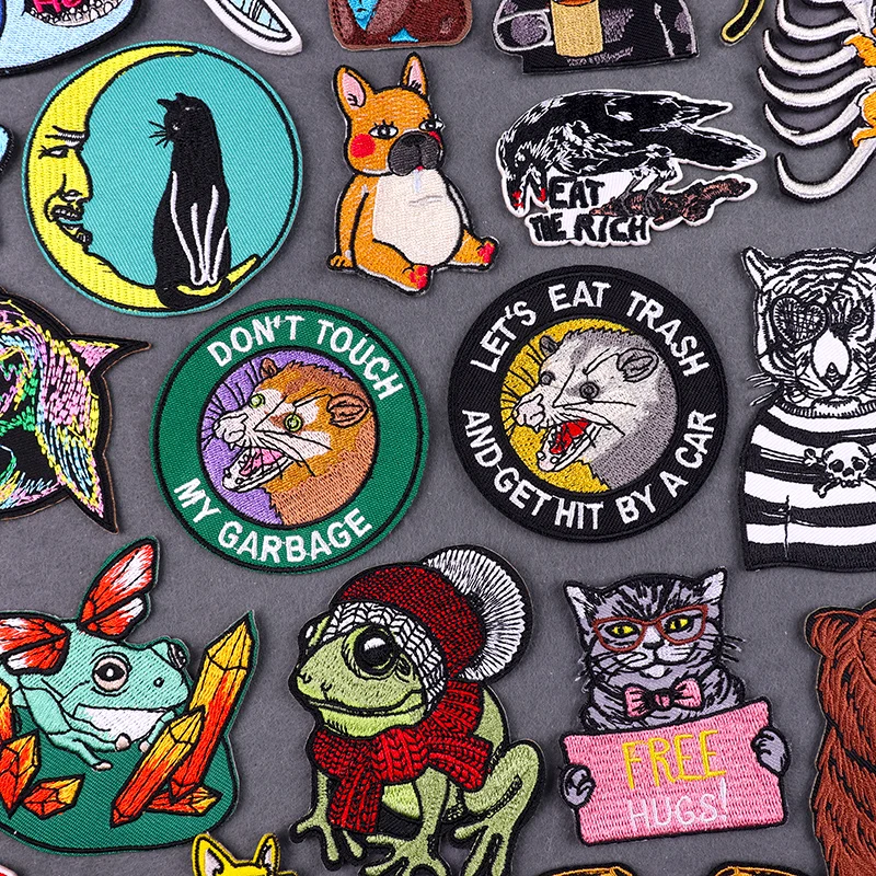 Parche Fusible de nutria, parches bordados de animales extraños para ropa, parche de hierro para Cuervo, decoración de costura de rana/gato, insignias adhesivas
