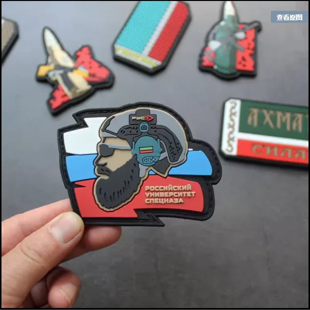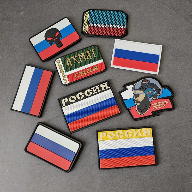 Parche de gancho y bucle de goma de pvc con bandera rusa, insignia de moral para fanáticos del ejército barbudo, ropa cecena, pegatina para mochila, parches militares