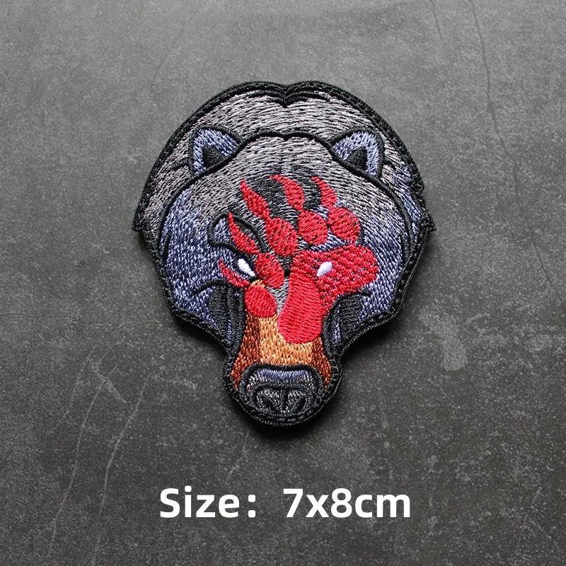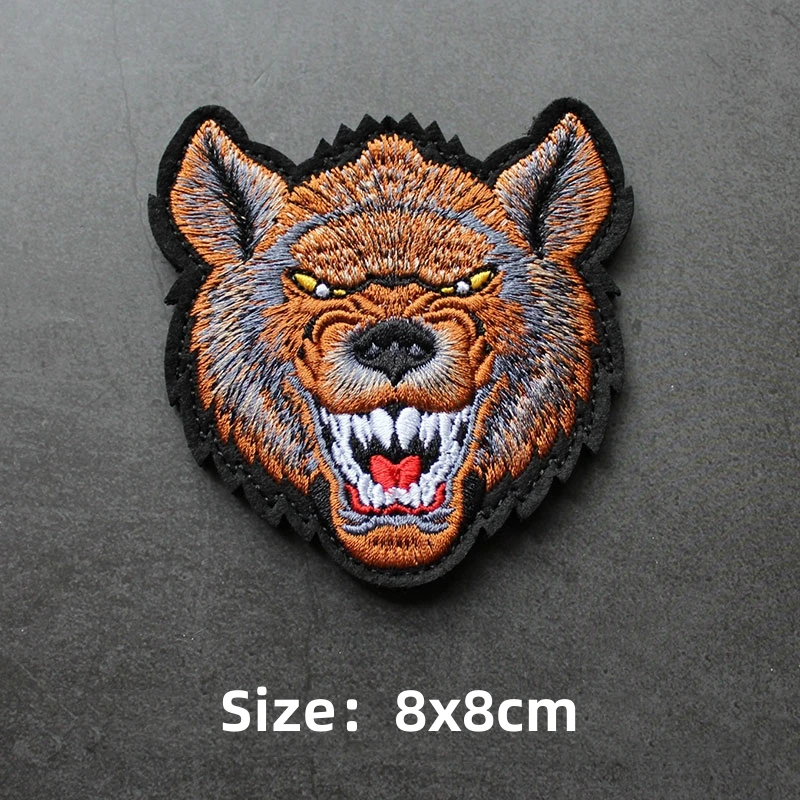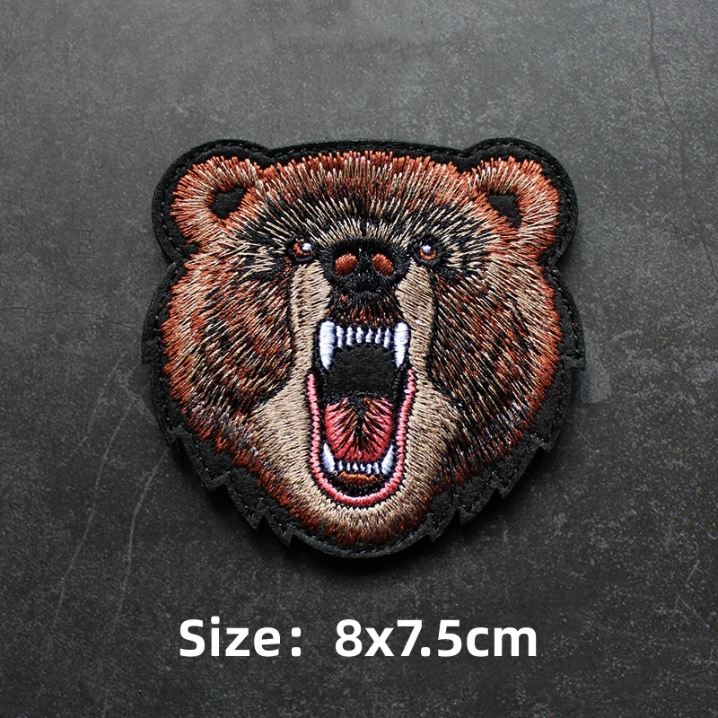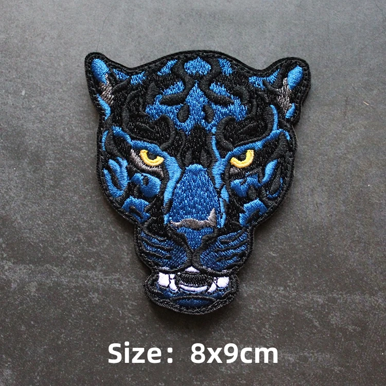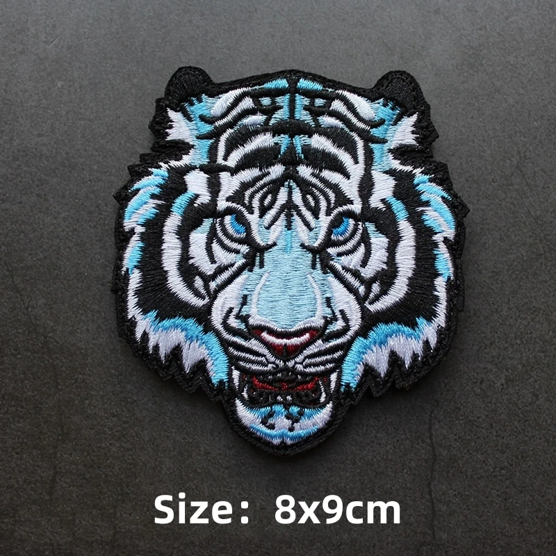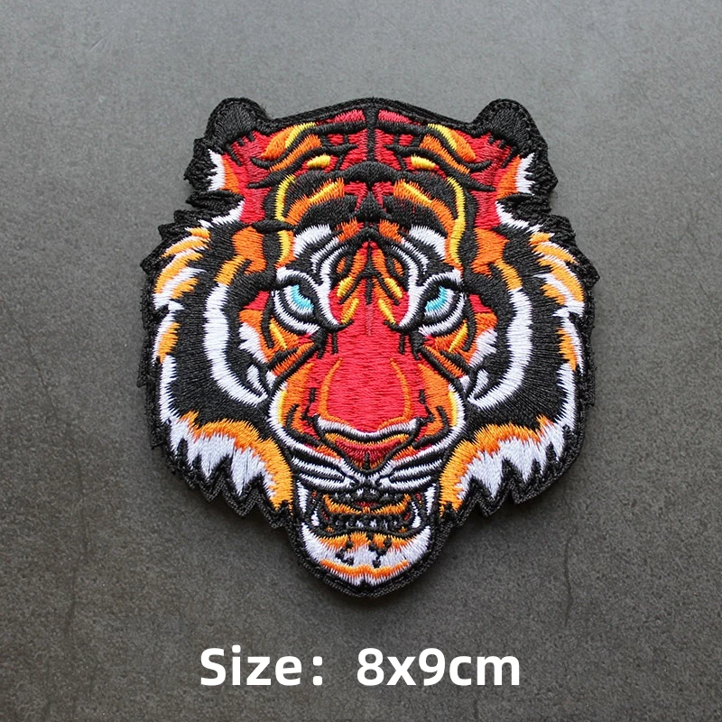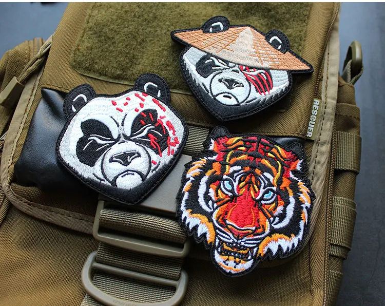 Parche de gancho y bucle bordado de animales, brazalete de Panda, tiburón, Rey de la jungla, emblema de cabeza de tigre, insignia de moral, mochila, pegatina para acampar grande