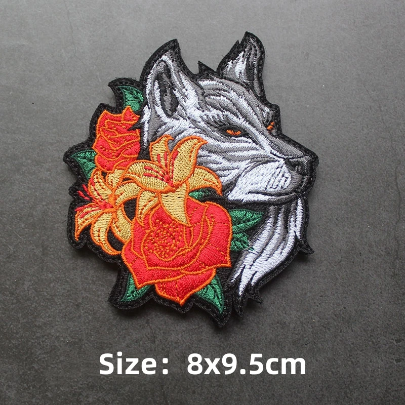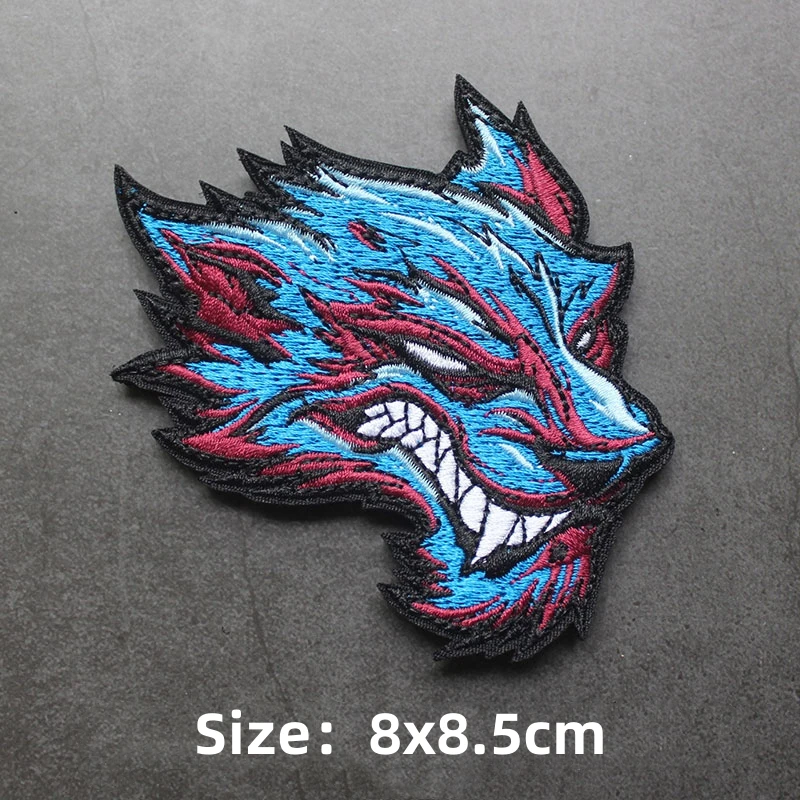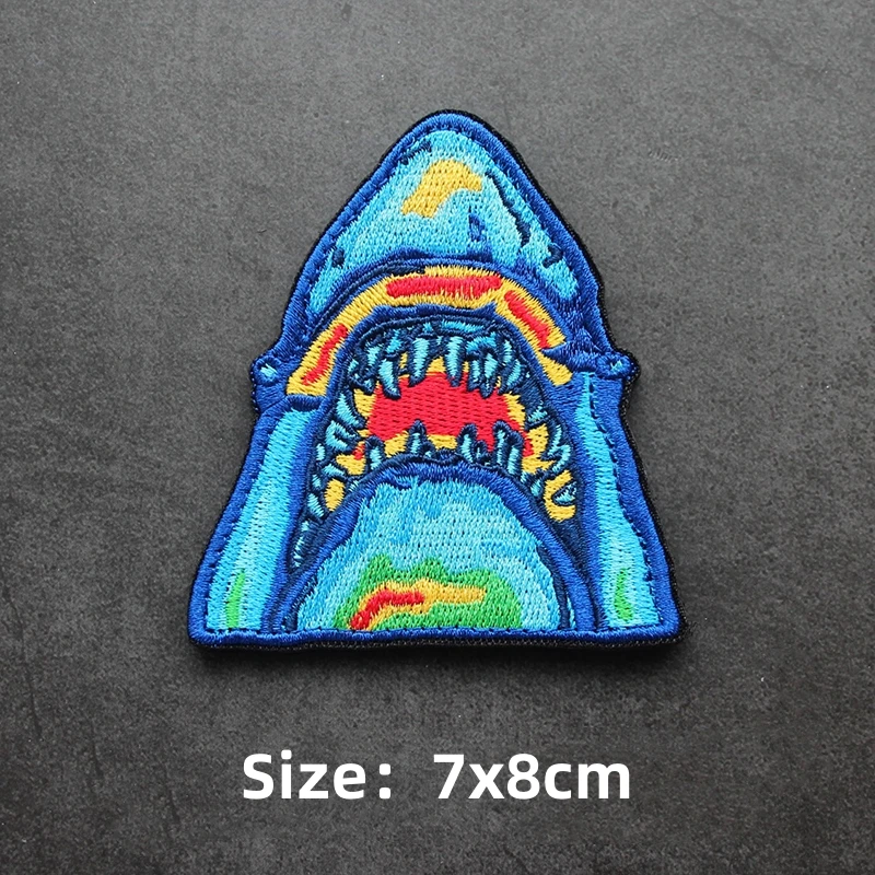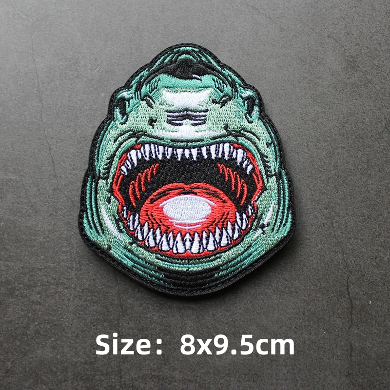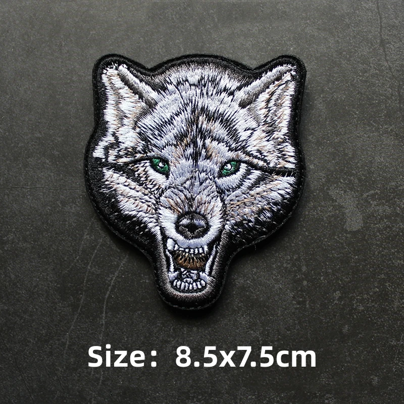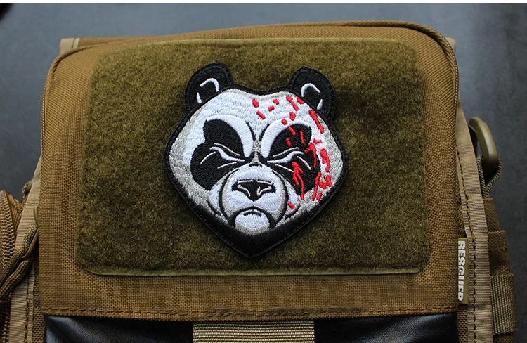 Parche de gancho y bucle bordado de animales, brazalete de Panda, tiburón, Rey de la jungla, emblema de cabeza de tigre, insignia de moral, mochila, pegatina para acampar grande