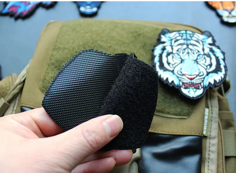 6.parte posterior: si se trata de un gancho y bucle, péguelo directamente en la superficie del bucle. Planche la ropa con plancha si hay pegamento en la parte posterior. También puede coser algunos puntos simples después del planchado si puede, lo hace más firme y duradero. Si no tiene pegamento, séquelelo. en tu ropa.