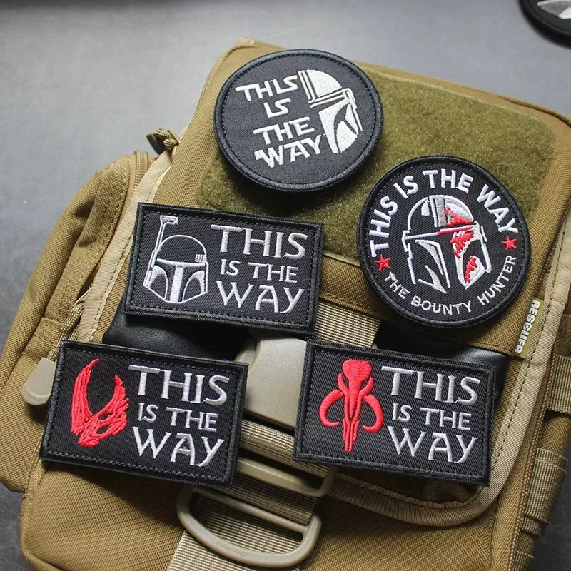 Parche de gancho y bucle bordado, casco completo, este es el camino, 2 piezas