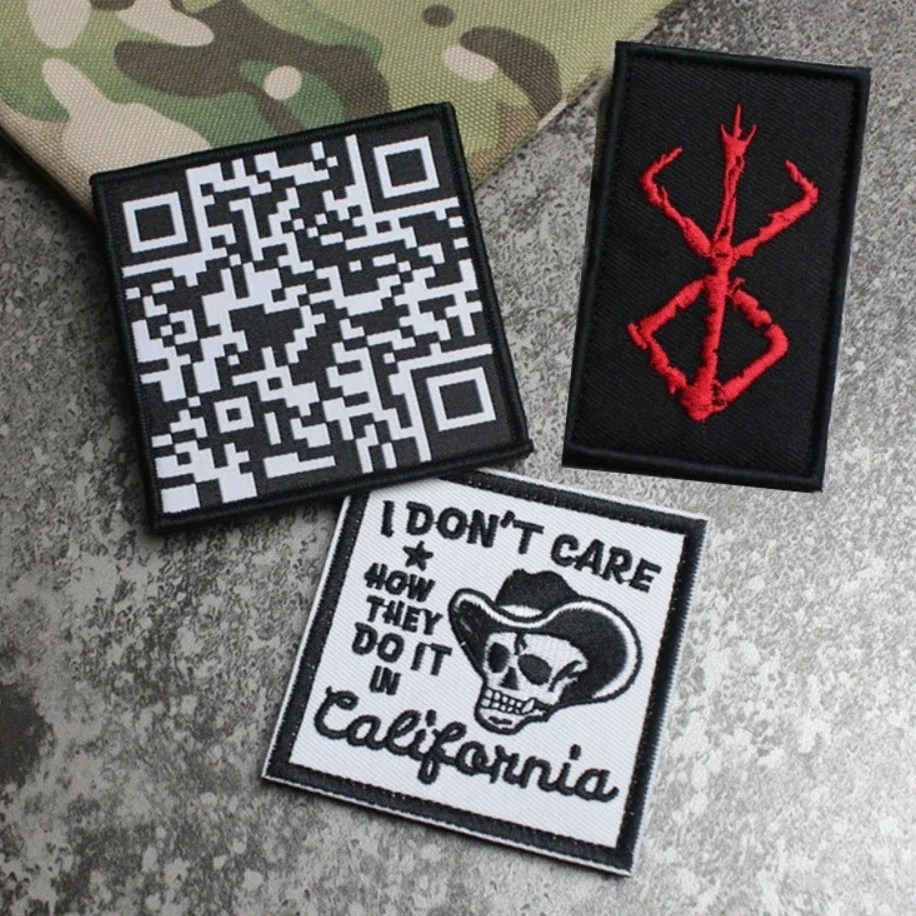 Parches de gancho y bucle con bordado de hueso de oráculo de código QR, pegatina para mochila de rana, brazalete creativo, pistola, rosa, accesorio táctico, insignia de moral
