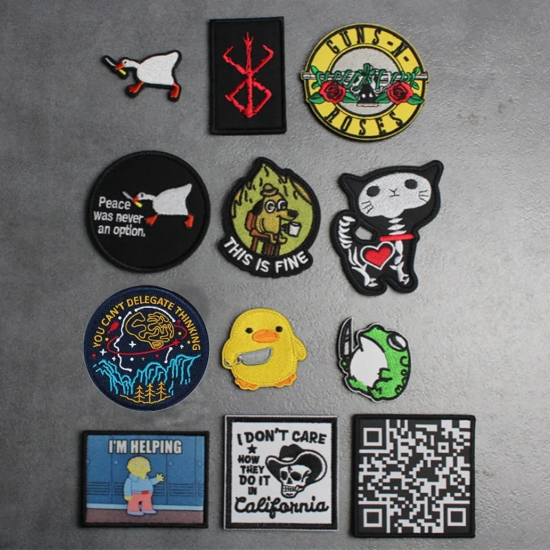 Parche de gancho y bucle bordado de hueso de oráculo, código QR, pegatina de mochila de rana, brazalete creativo, pistola, rosa, accesorio táctico, insignia de moral