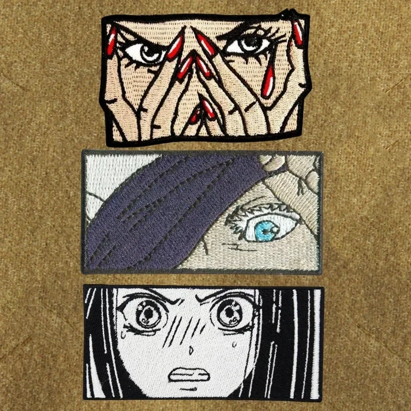 Insignia de moral bordada con ojos de chica de Anime en la mochila, Parche de gancho y bucle, parches tácticos adhesivos de fusión en caliente para chica Sexy para ropa