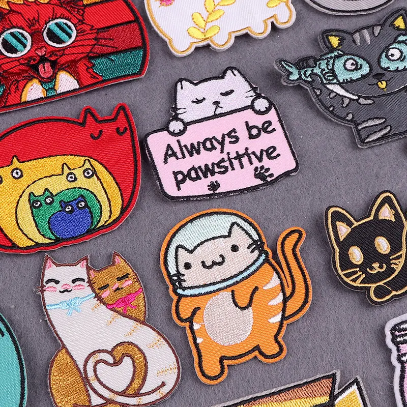 Parche de gato para planchar, parches bordados en la ropa, cosas de dibujos animados, ropa, parches de bucle de gancho a rayas para ropa, insignias en la mochila