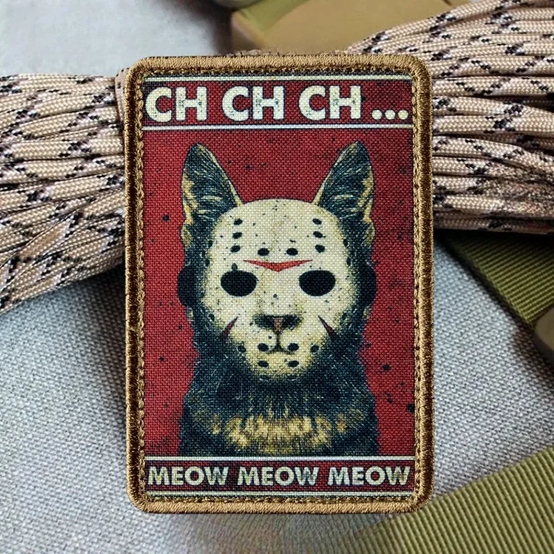 Meow parche de gato en ropa máscara de terror gato impreso emblema de gancho y bucle ejército militar insignia de moral brazalete accesorios de bolsa táctica