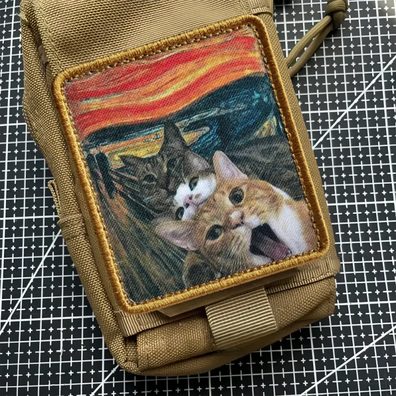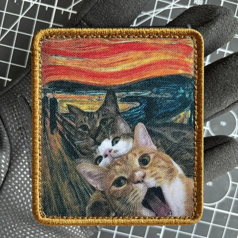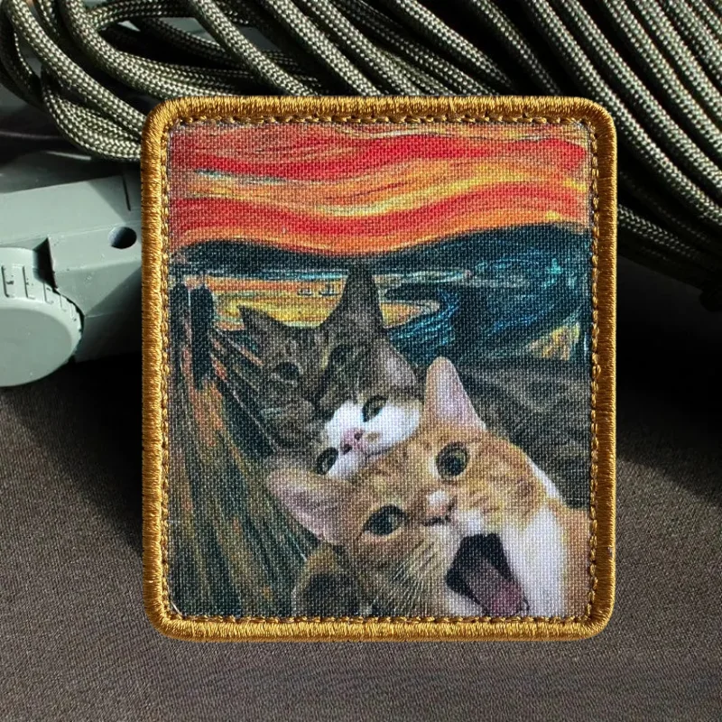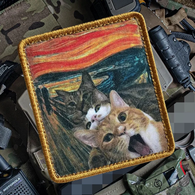 Parche de pintura al óleo "Kotokrik", parches de gancho y bucle con estampado de gatos bonitos, insignia de moral militar, brazalete, mochila, pegatinas para ropa