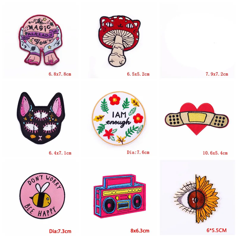 Parche de girasol de 10 unids/lote para planchar, parches bordados para ropa, parches termoadhesivos para ropa, insignia de parche de letras de dibujos animados
