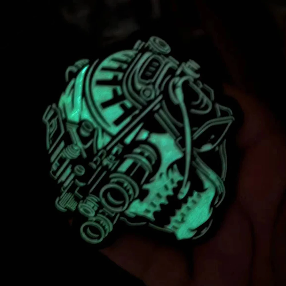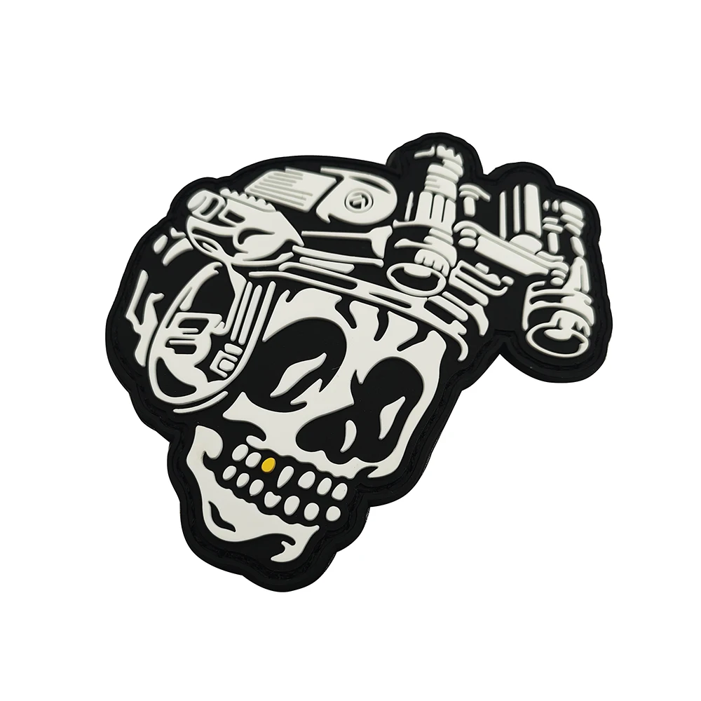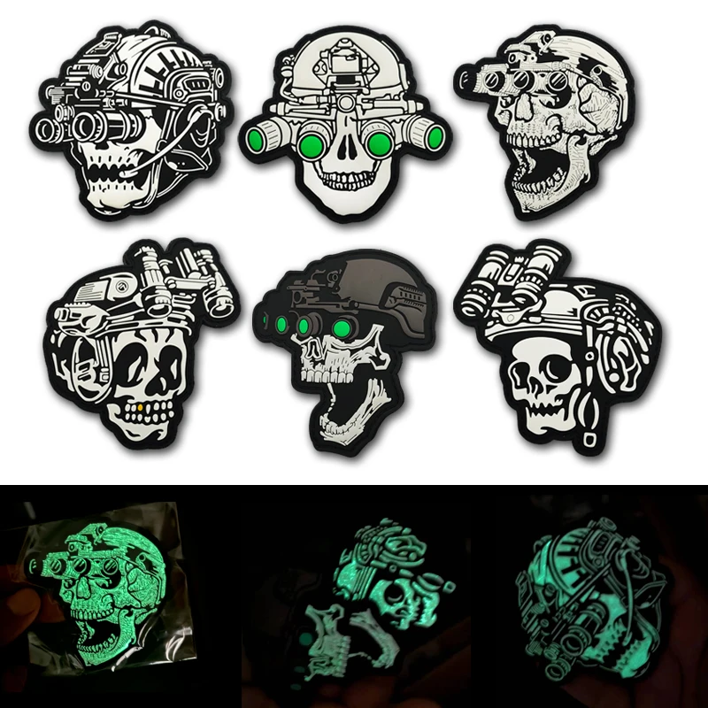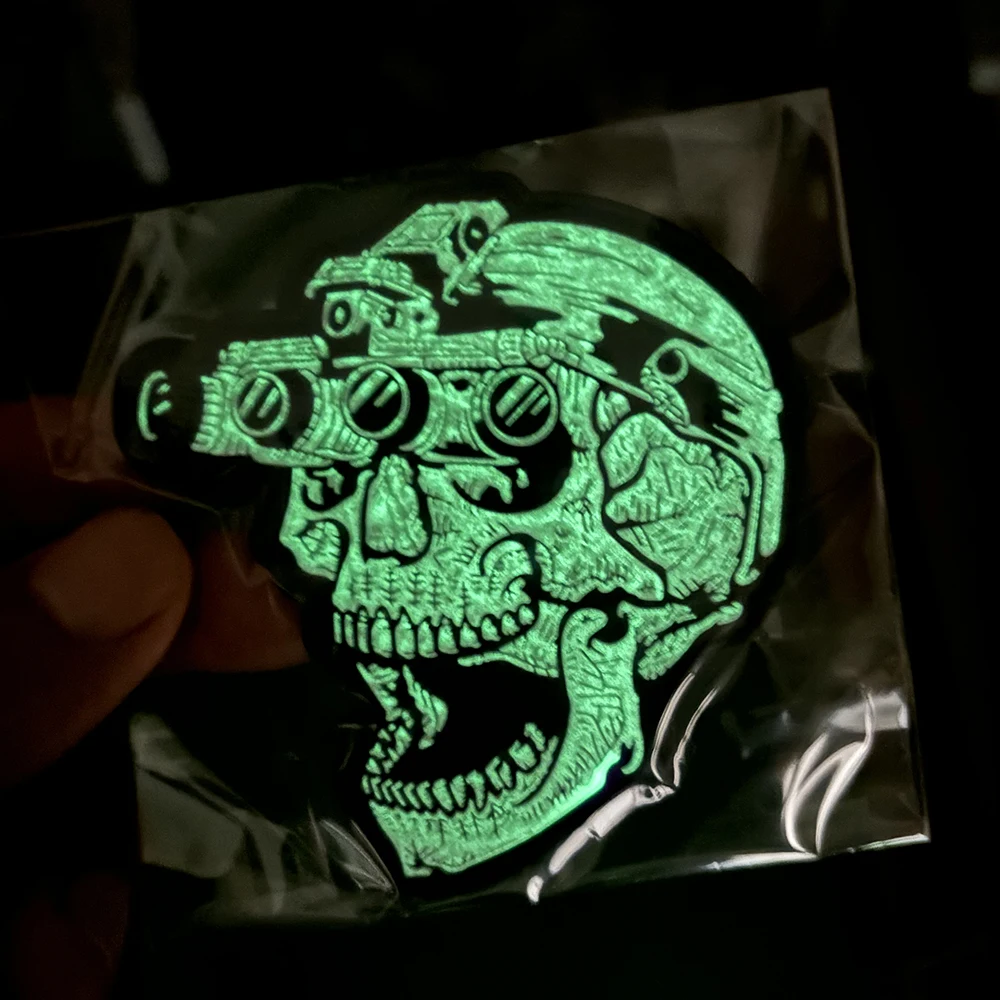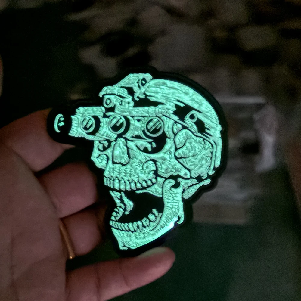 Parche de goma de Calavera, insignia de brazalete, calcomanía adhesiva, adorno decorativo, parches de goma tácticos militares que brillan en la oscuridad