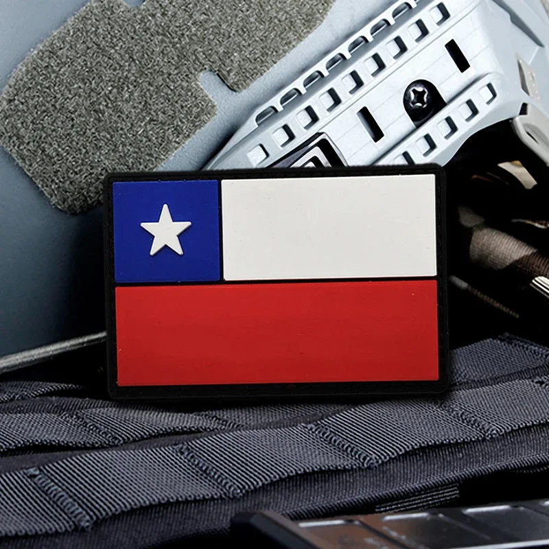 Parche de goma 3D de PVC, Bandera de Chile, insignia de moral, parches militares para mochila, pegatina para ropa, accesorio táctico