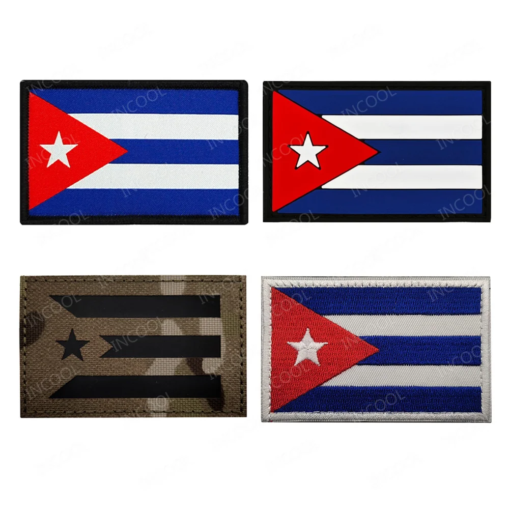 [Especificación]:Parche de bandera cubana de goma de PVC, banderas cubanas reflectantes IR, apliques de rayas, insignias de bordado decorativas para hombros, chaqueta de ropa