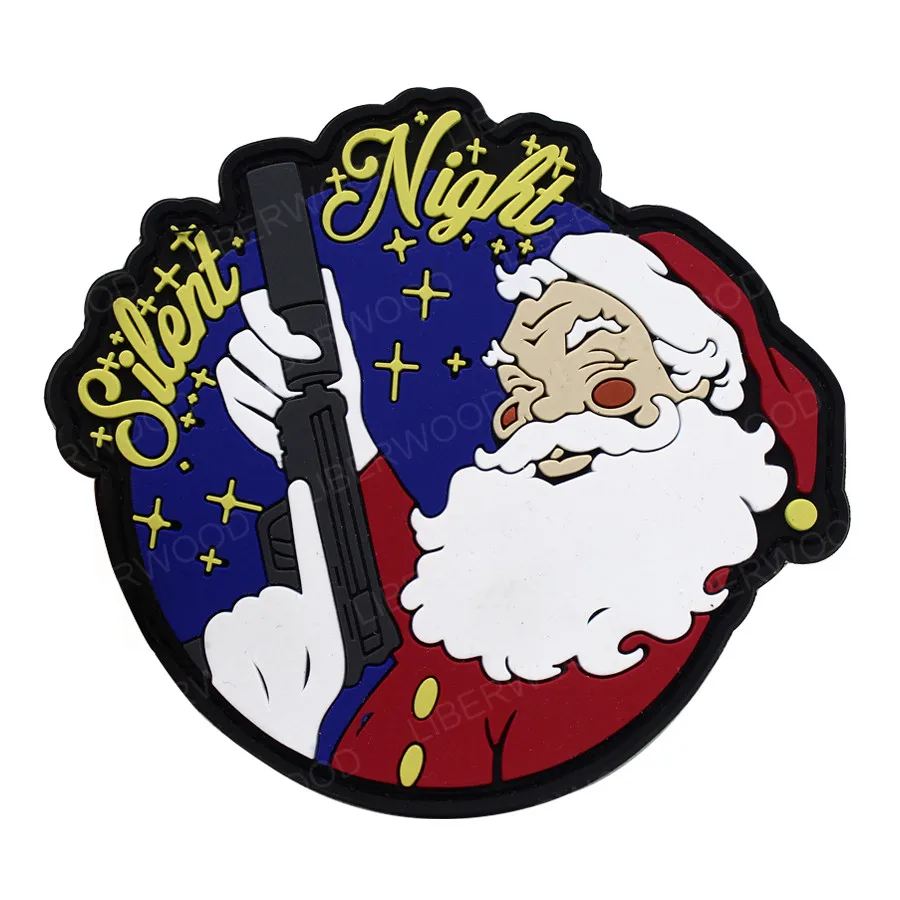 Parche de goma de PVC para Navidad, Parche de Papá Noel, Kriss, Kringle con pistola, insignia de mermelada de hielo