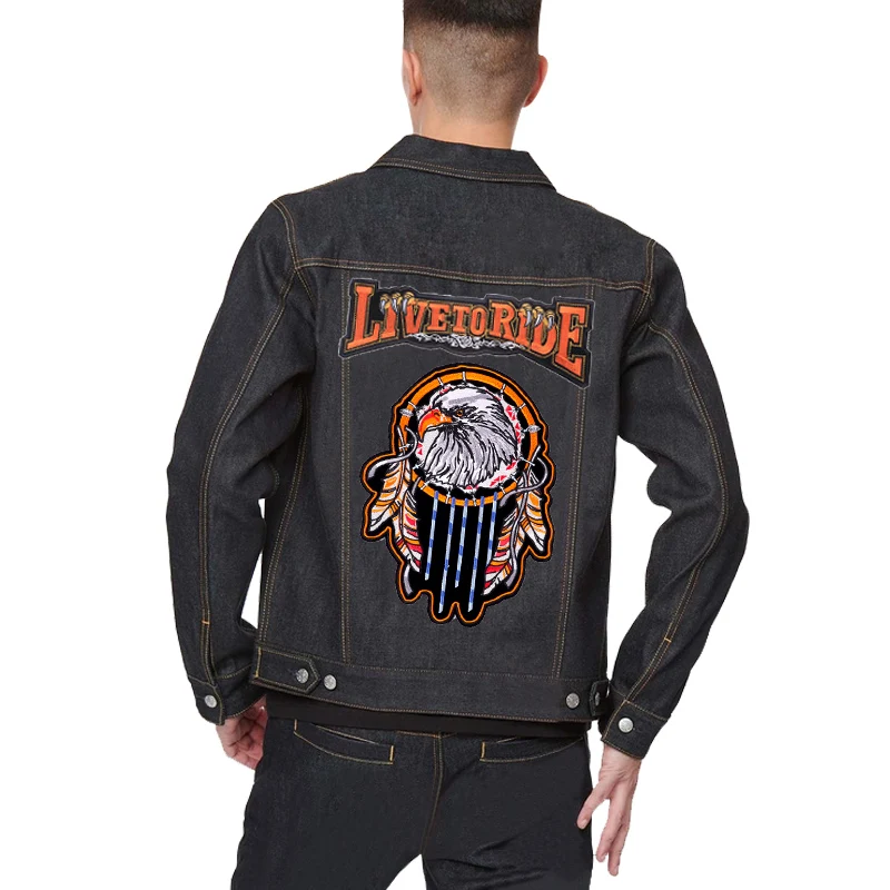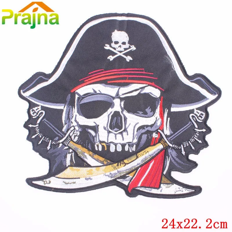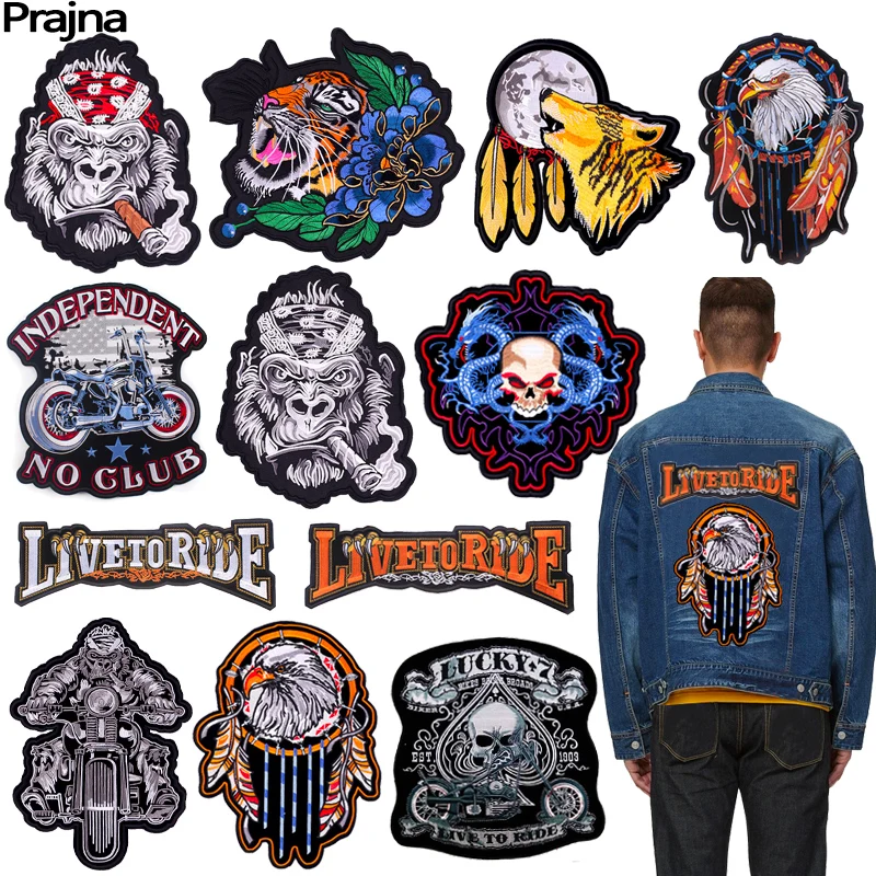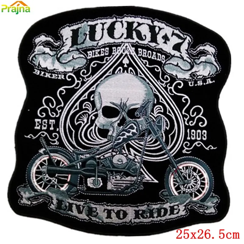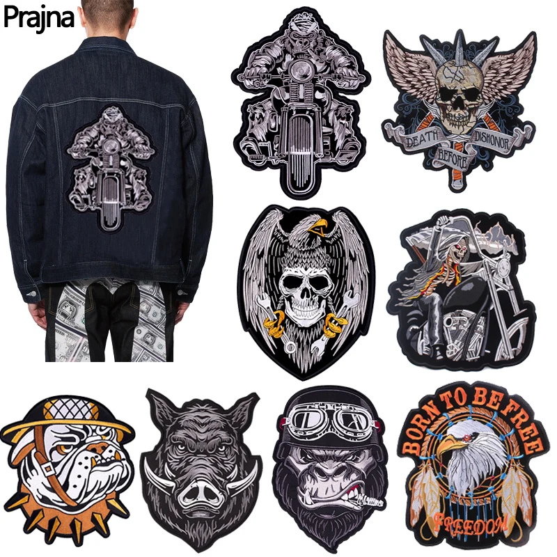 Parche grande Punk para motociclista, parche bordado para planchar, parches para ropa, parches bordados con parte trasera de calavera para ropa DIY