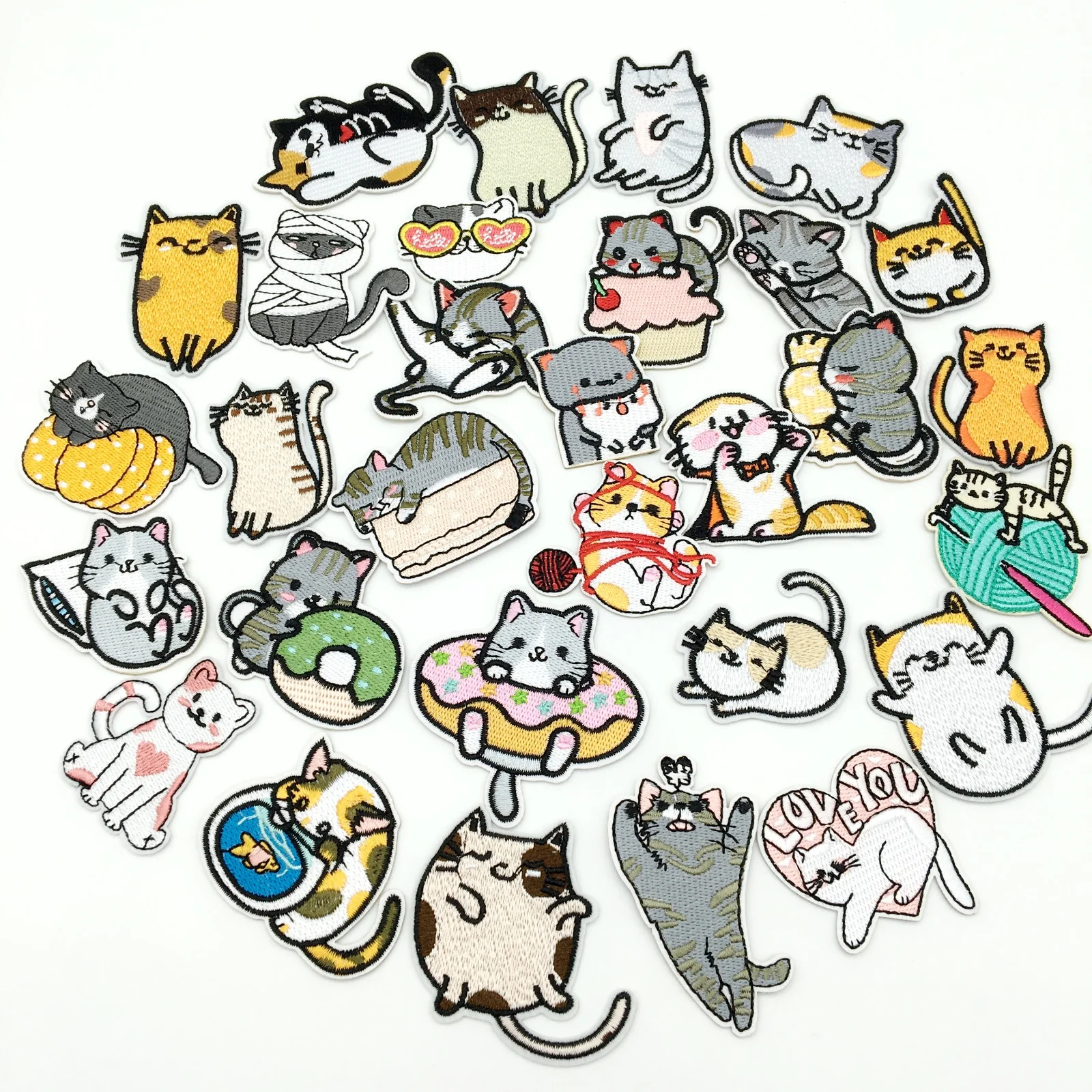 Parche de hierro bordado con gato de dibujos animados, parche divertido de gatito para camisas, pantalones vaqueros, sombreros, mochila, accesorio de apliques