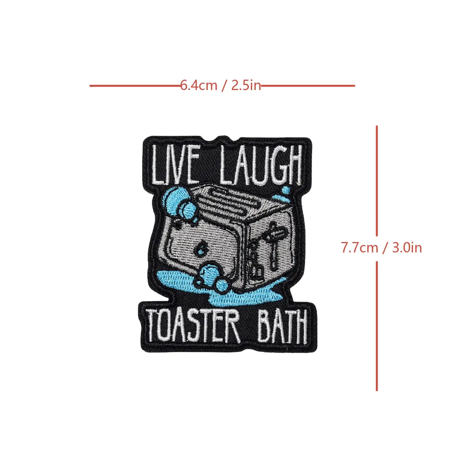Parche de humor oscuro para baño tostador Live Laugh, insignia bordada con gancho y bucle para bolso, ropa, mochila, chaquetas, sombrero, chaleco Molle