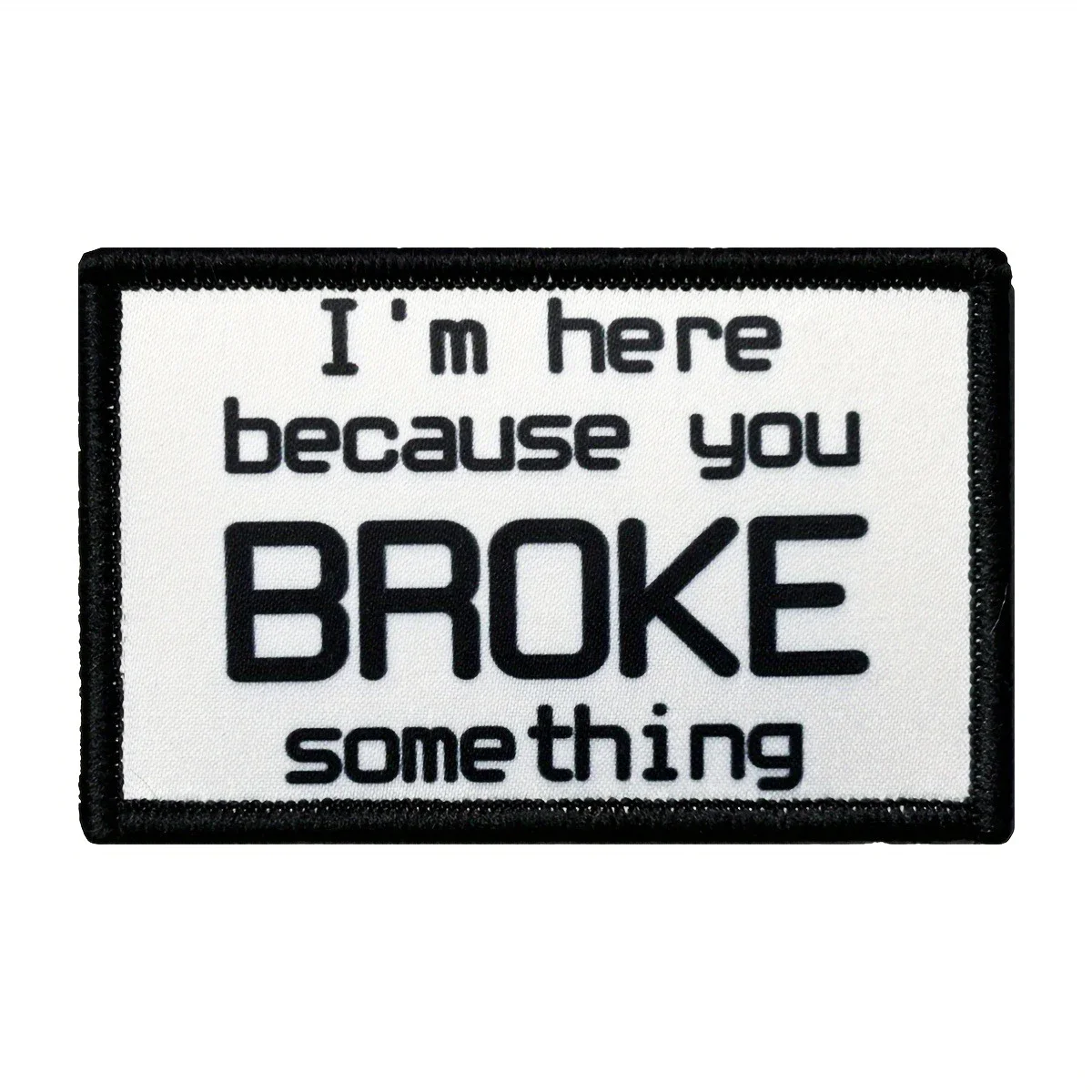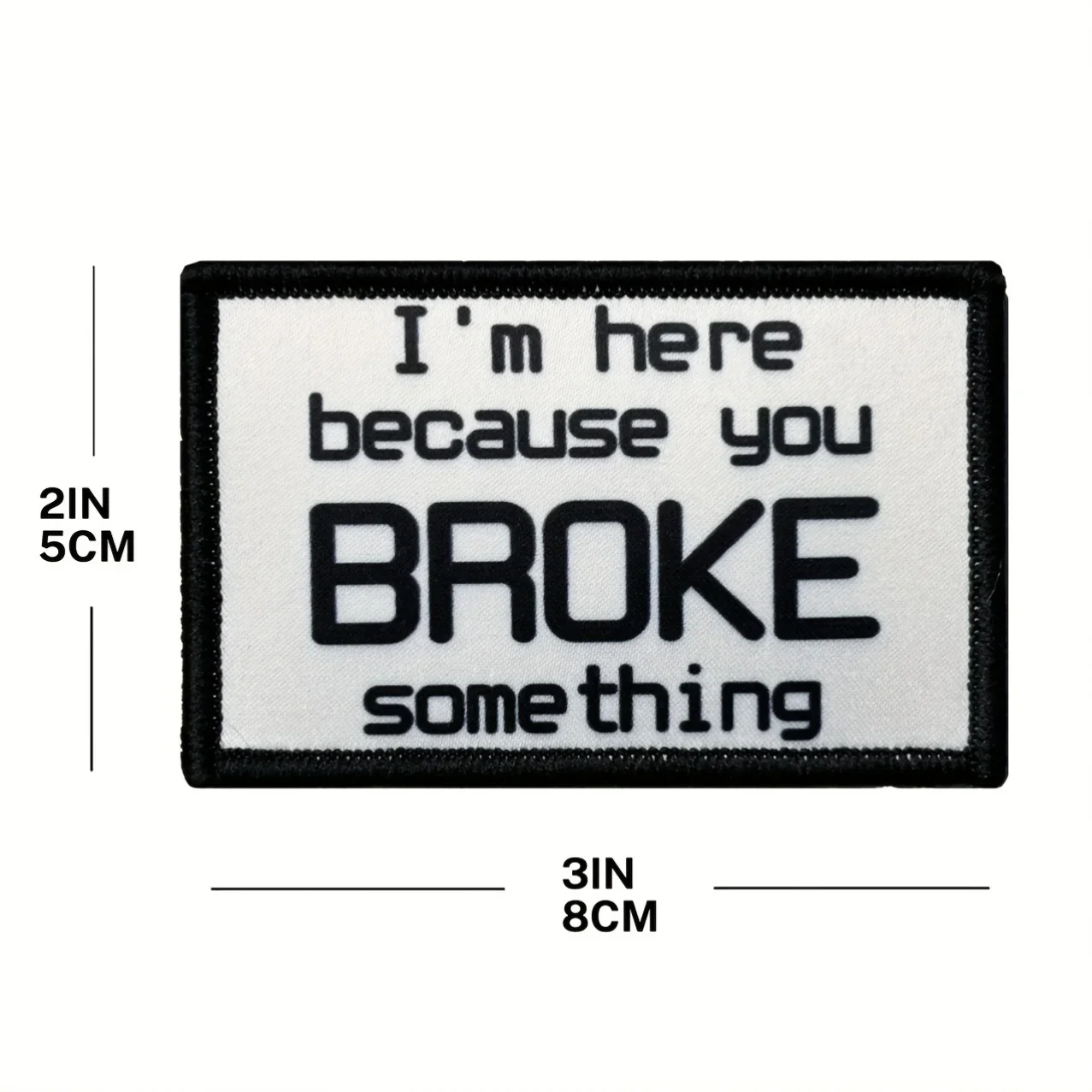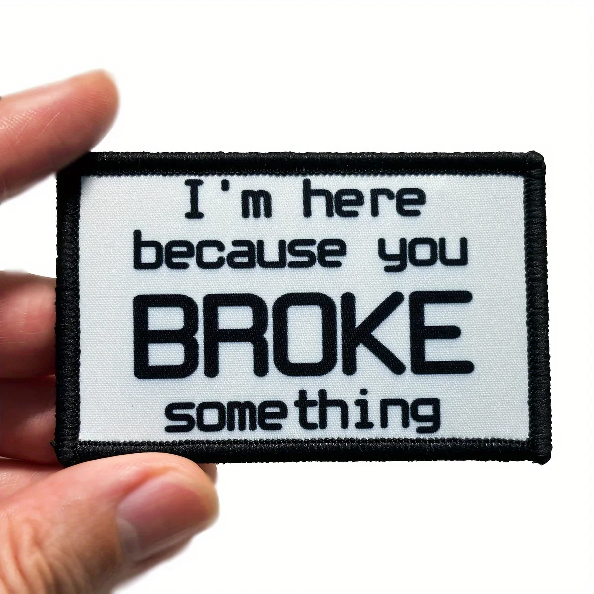 Parche "I'm Here for You breaked Something" con cierre de gancho y bucle, diseño de borde bordado para sombreros y bolsos