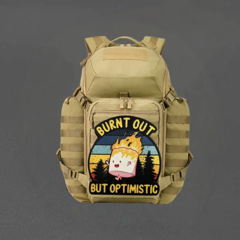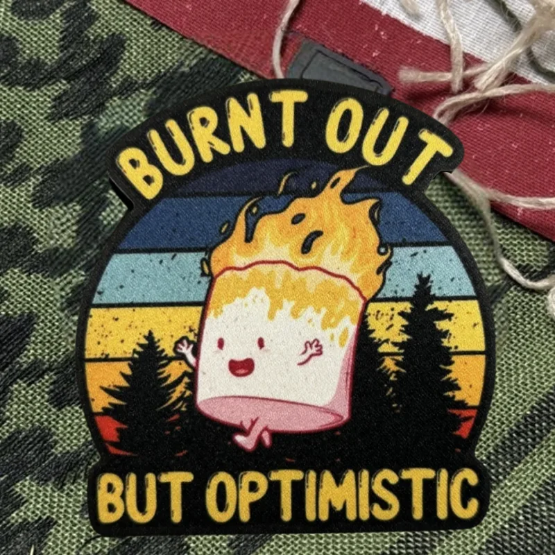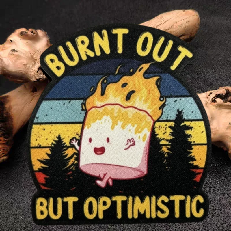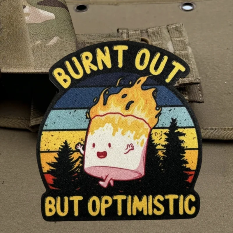 BURNT OUT MA Parche de impresión OPTIMÍSTICA Chaleco táctico Insignia de gancho y bucle Mochila Pegatinas decorativas Parches de brazalete para ropa