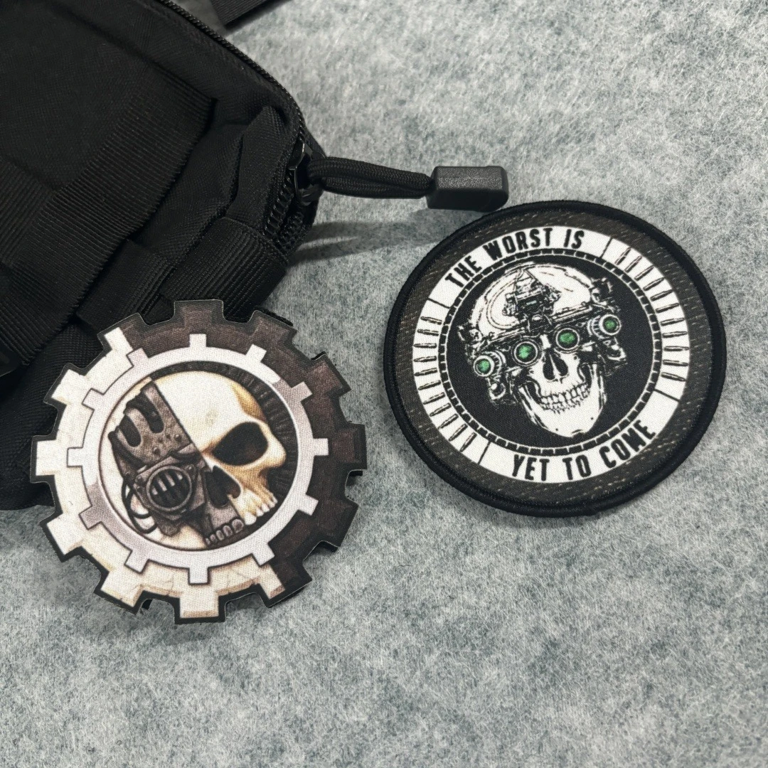Parche mecánico con estampado de calavera, insignia de moral táctico con calavera de visión nocturna, parches de gancho y bucle, brazalete militar, pegatinas para mochila