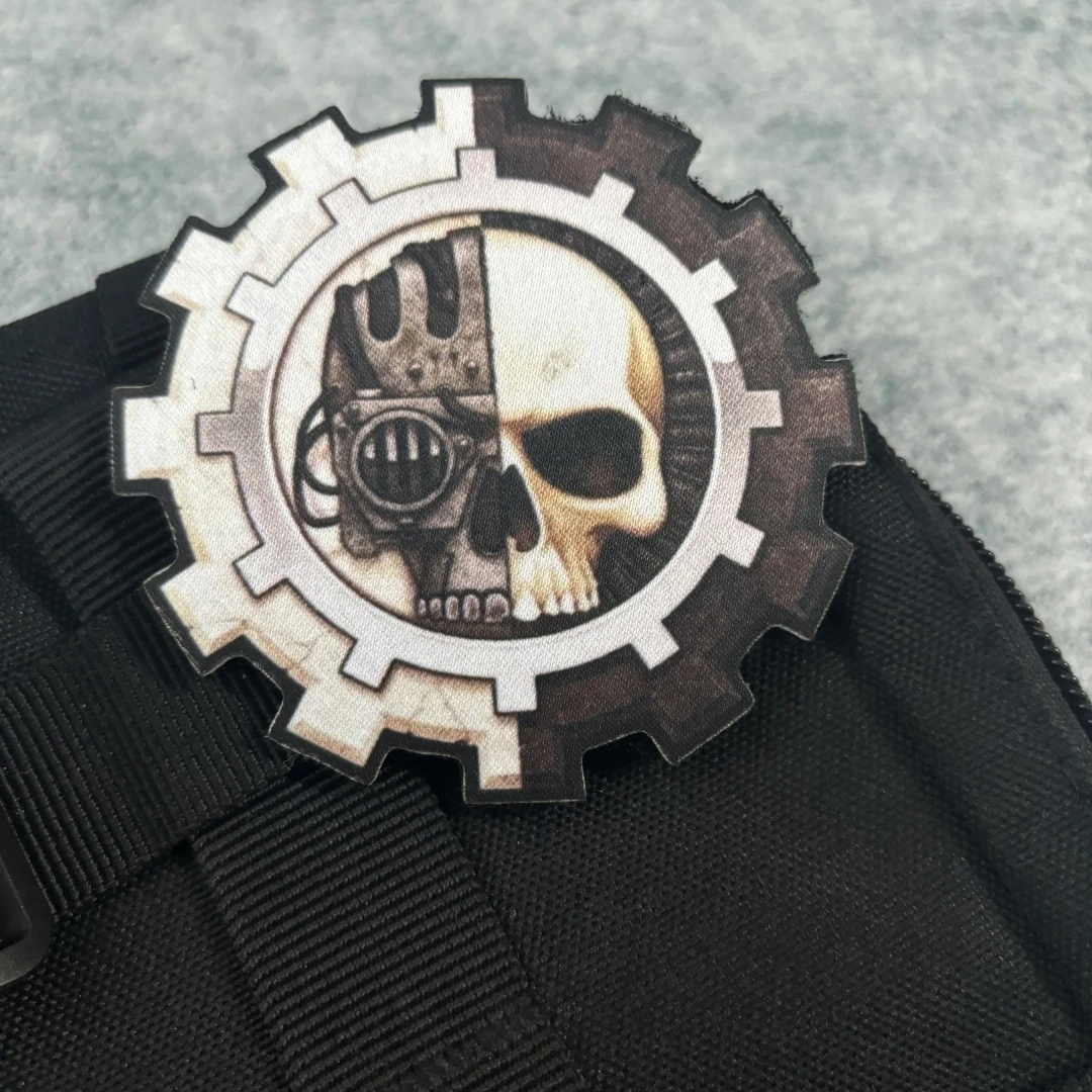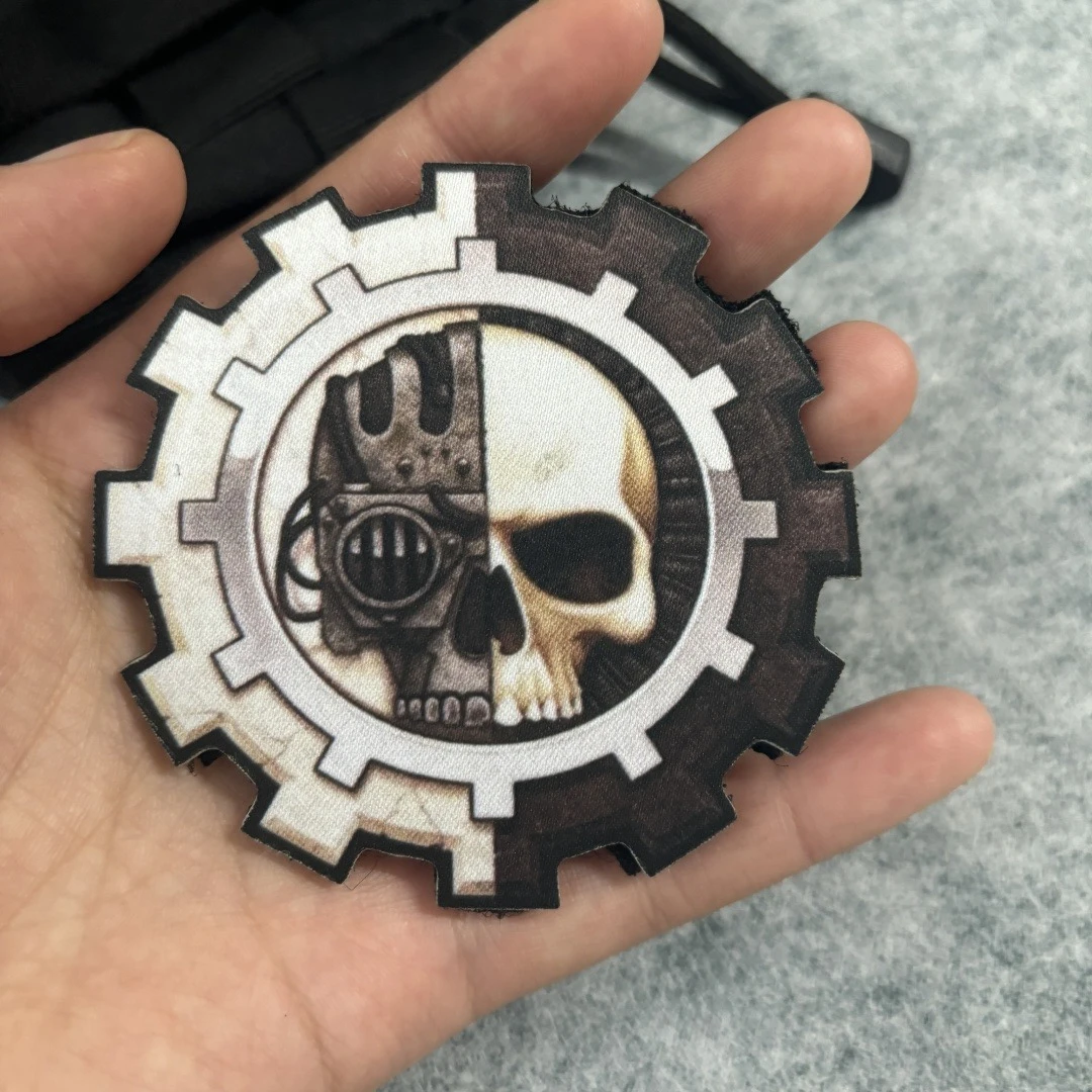 Parche impreso de calavera mecánica, insignia de moral táctica de calavera de visión nocturna, parches de gancho y bucle, brazalete militar, pegatinas para mochila